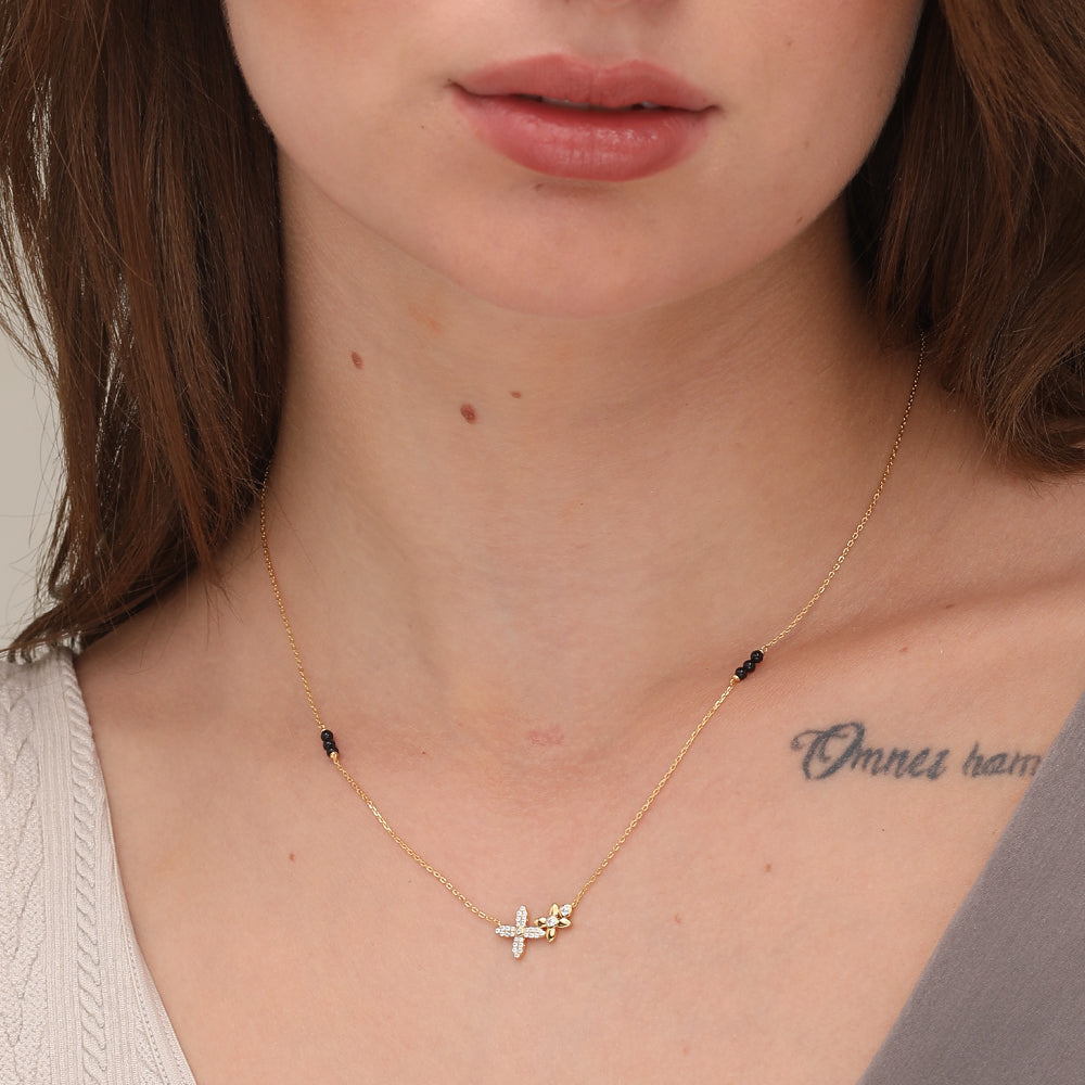 Modern Mangalsutra crafted in 925 sterling silver with 18k Gold Vermeil plating has a beautiful stars pendant.