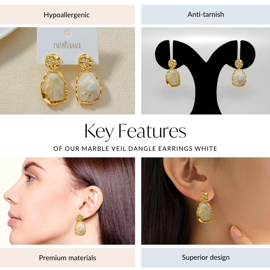Marble Veil Dangle Earrings White