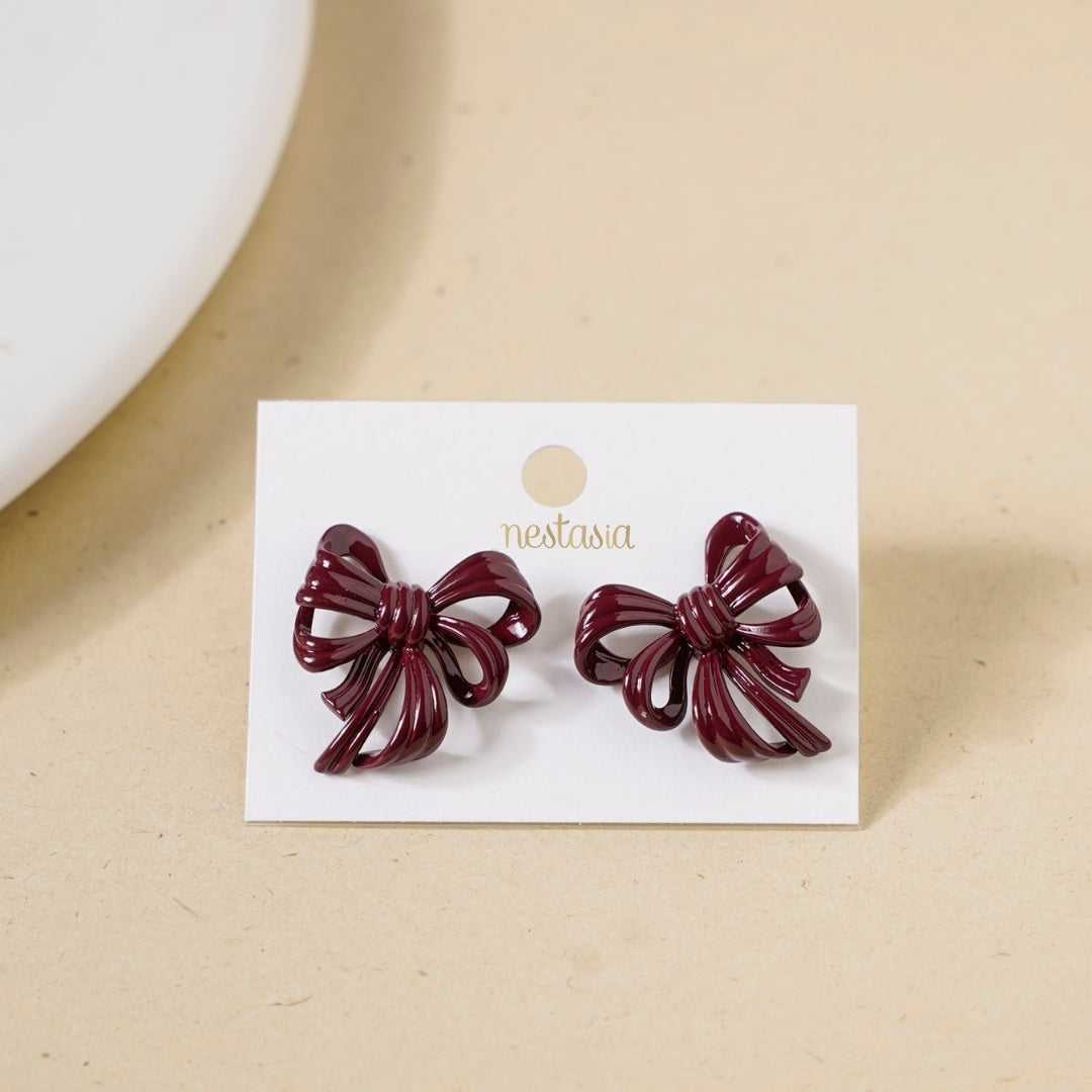 Maroon Bow Drop Earrings