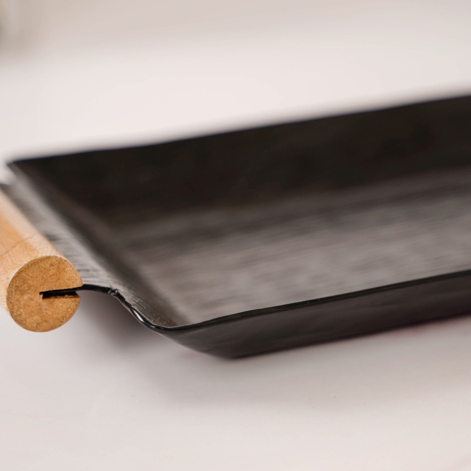 Matte Black Rectangle Metal Tray With Wooden Handle 19x6 Inch