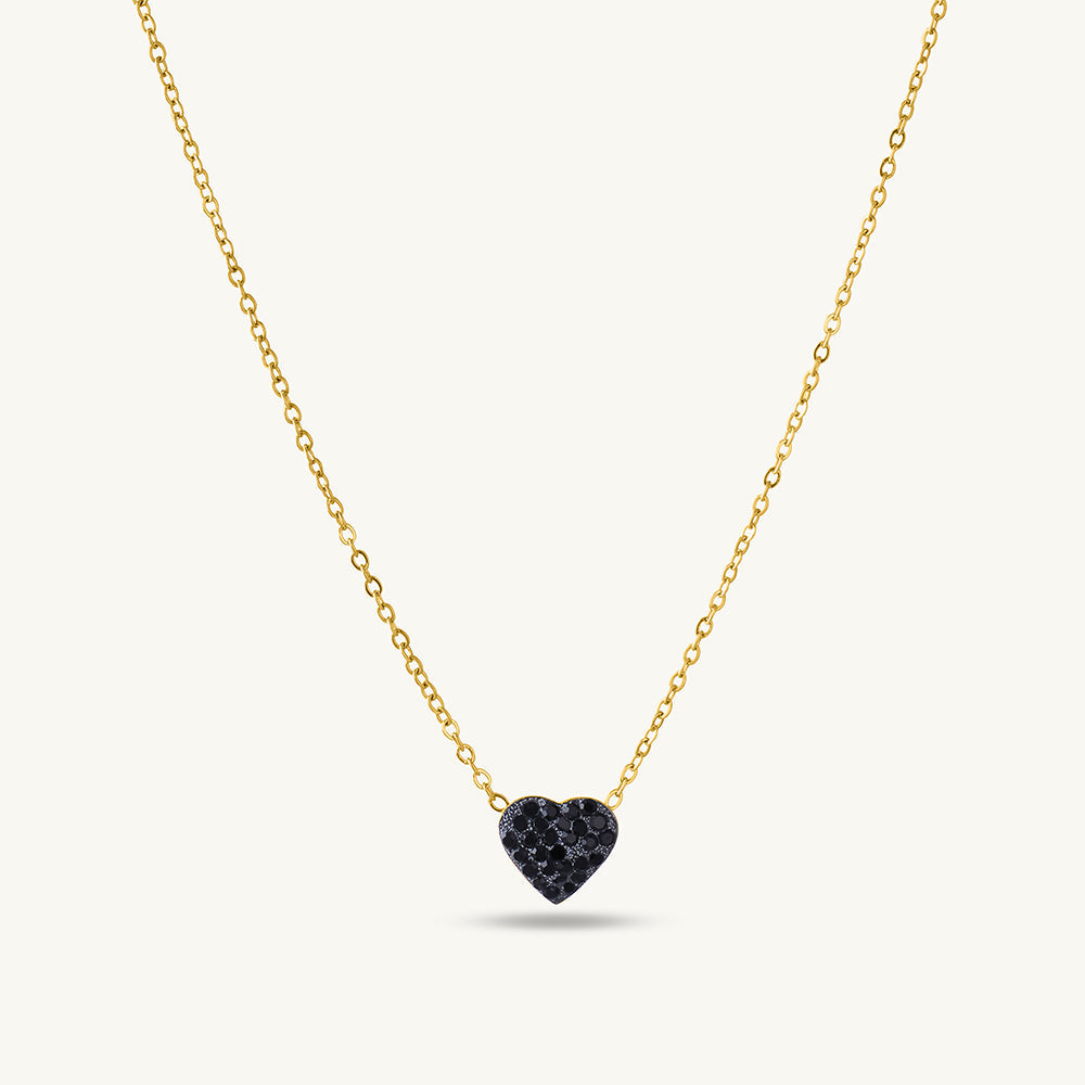 The Medium Black Heart Necklace exudes modern elegance with its sleek black cubic zirconia heart pendant. Crafted in stainless steel with a radiant 18k gold tone, this waterproof and anti-tarnish necklace adds a subtle yet striking accent to any outfit. Perfect for casual, office, or evening wear, it enhances both everyday and festive ensembles with chic, contemporary charm.