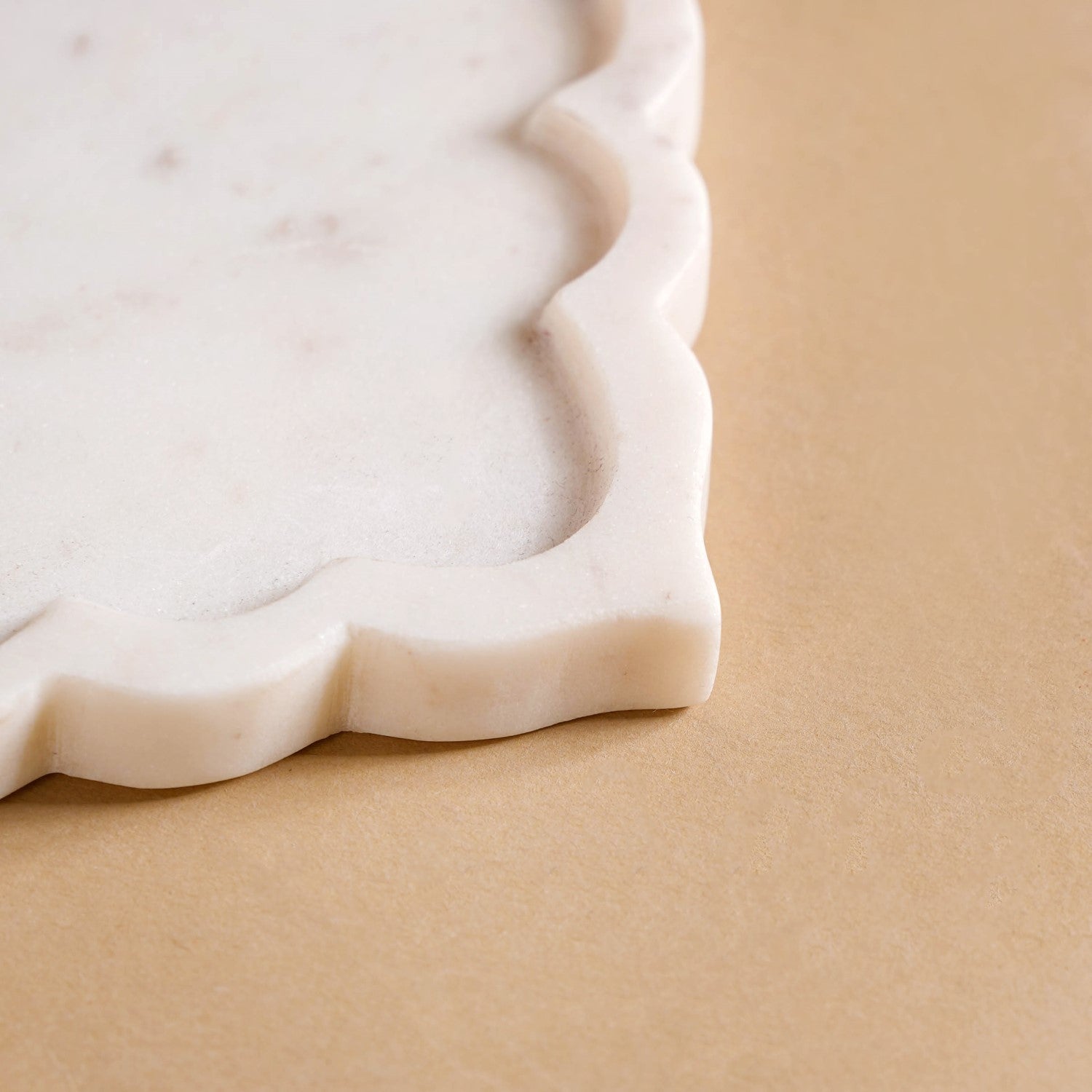 Design: The serving platter comes in a pristine off-white hue with breathtaking natural marble patterns. Flaunting a captivating Mehrab design that pays homage to rich cultural artistry and classical motifs, this platter is the perfect choice for presenting your culinary delights. Complemented by a smooth polished surface, the marble platter brings a lot to the table!