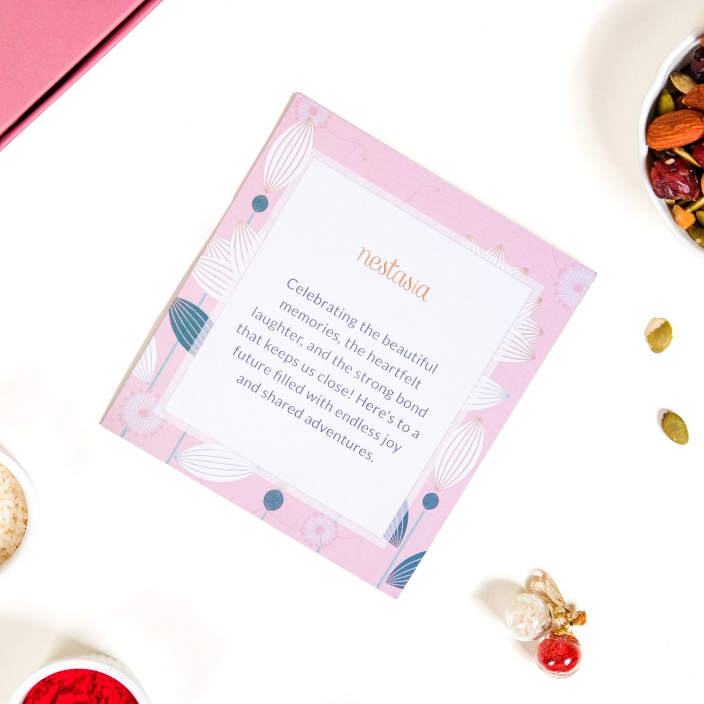 Nestip: Personalise the Rakhi hamper by pairing it with handmade chocolates or traditional Indian sweets.