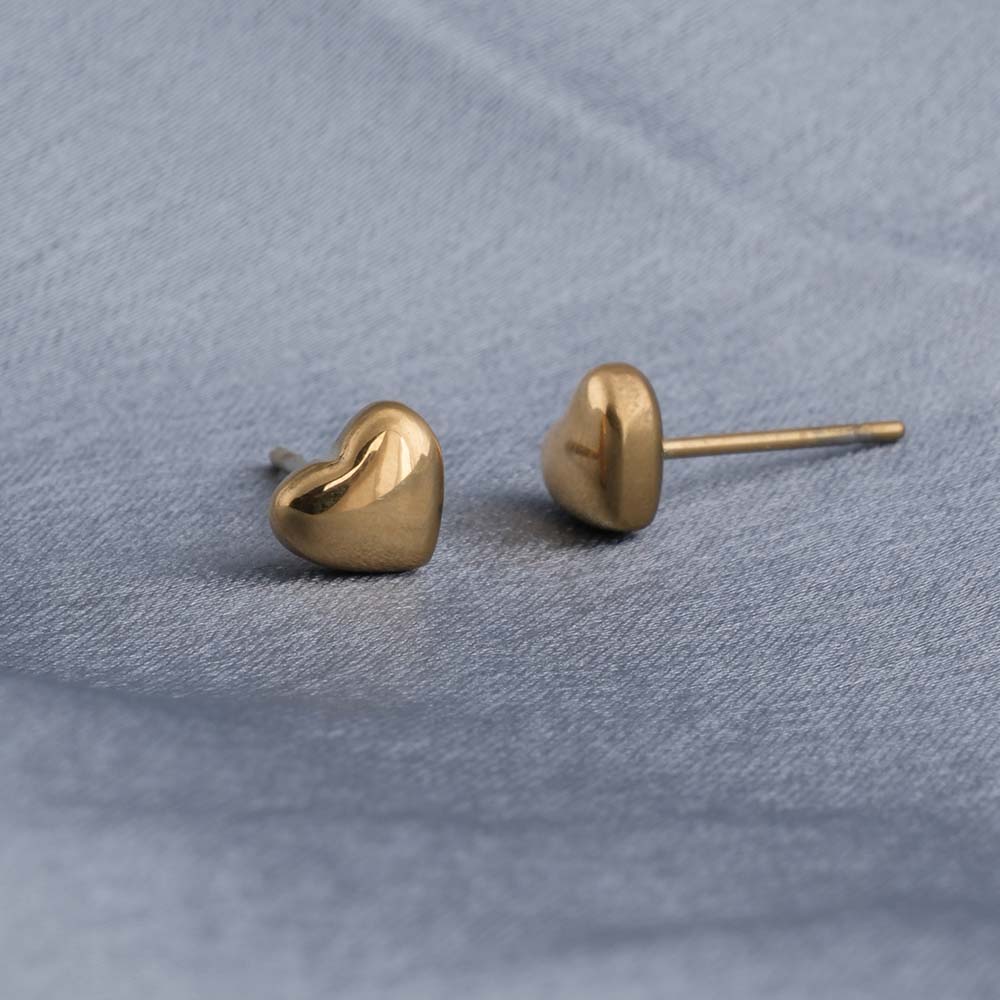 Elevate your everyday look with these 18k gold-plated minimalist heart stud earrings. Subtle yet stylish, they offer a delicate shimmer that complements any outfit. Perfect for workdays, casual outings, or layering with other studs, these earrings bring a touch of feminine charm to your jewellery collection. Durable, lightweight, and comfortable, they are designed for all-day wear.
