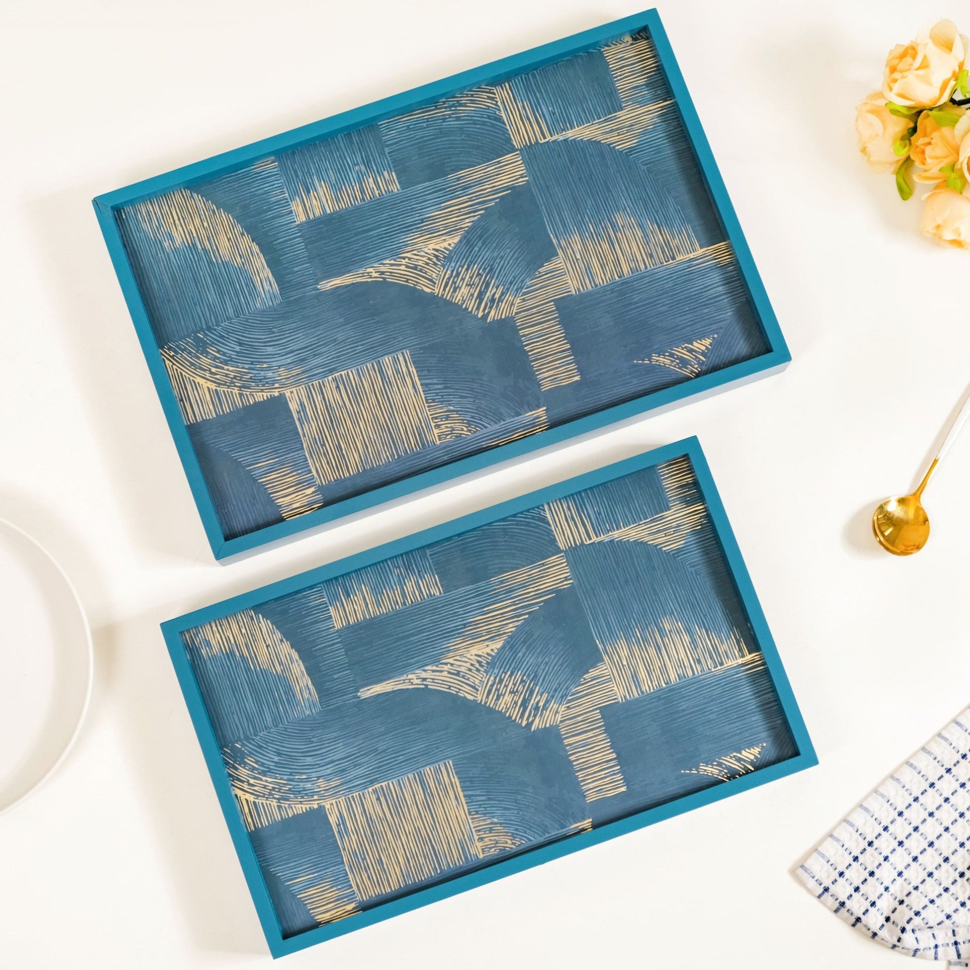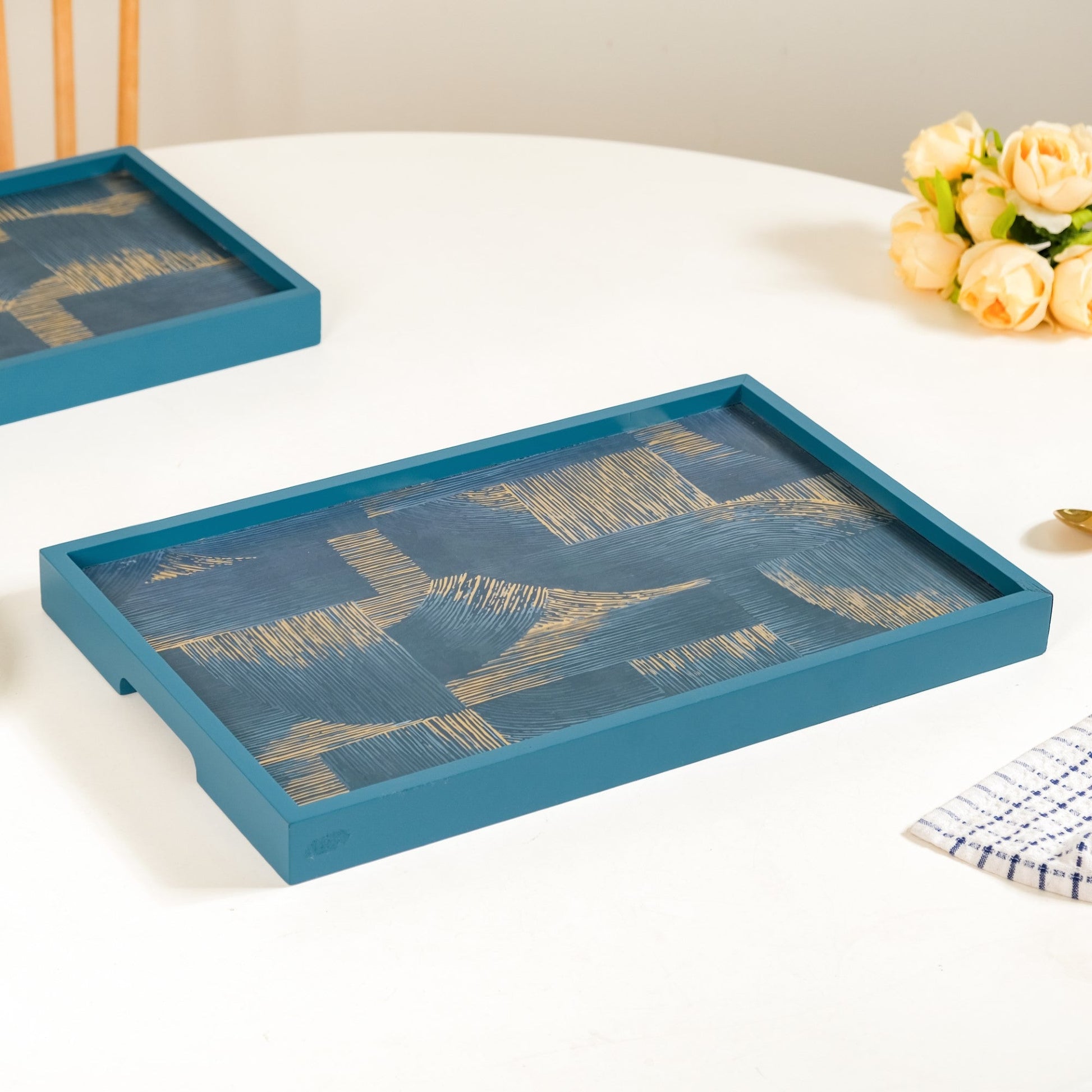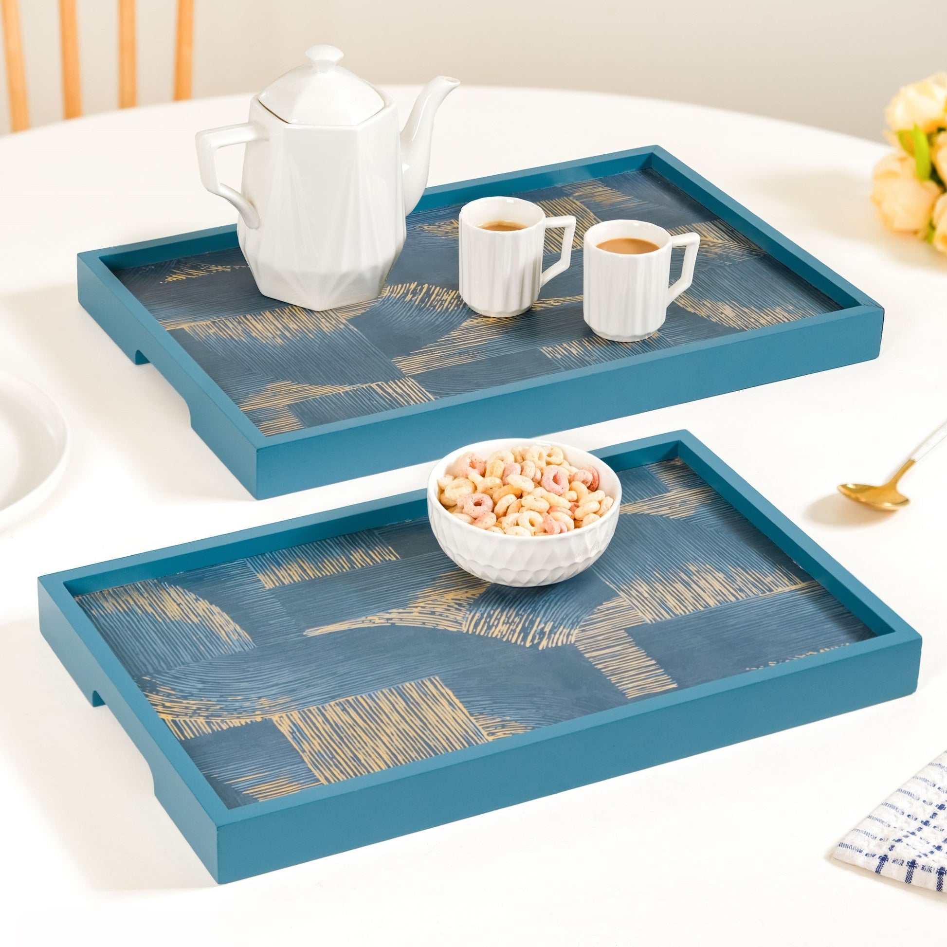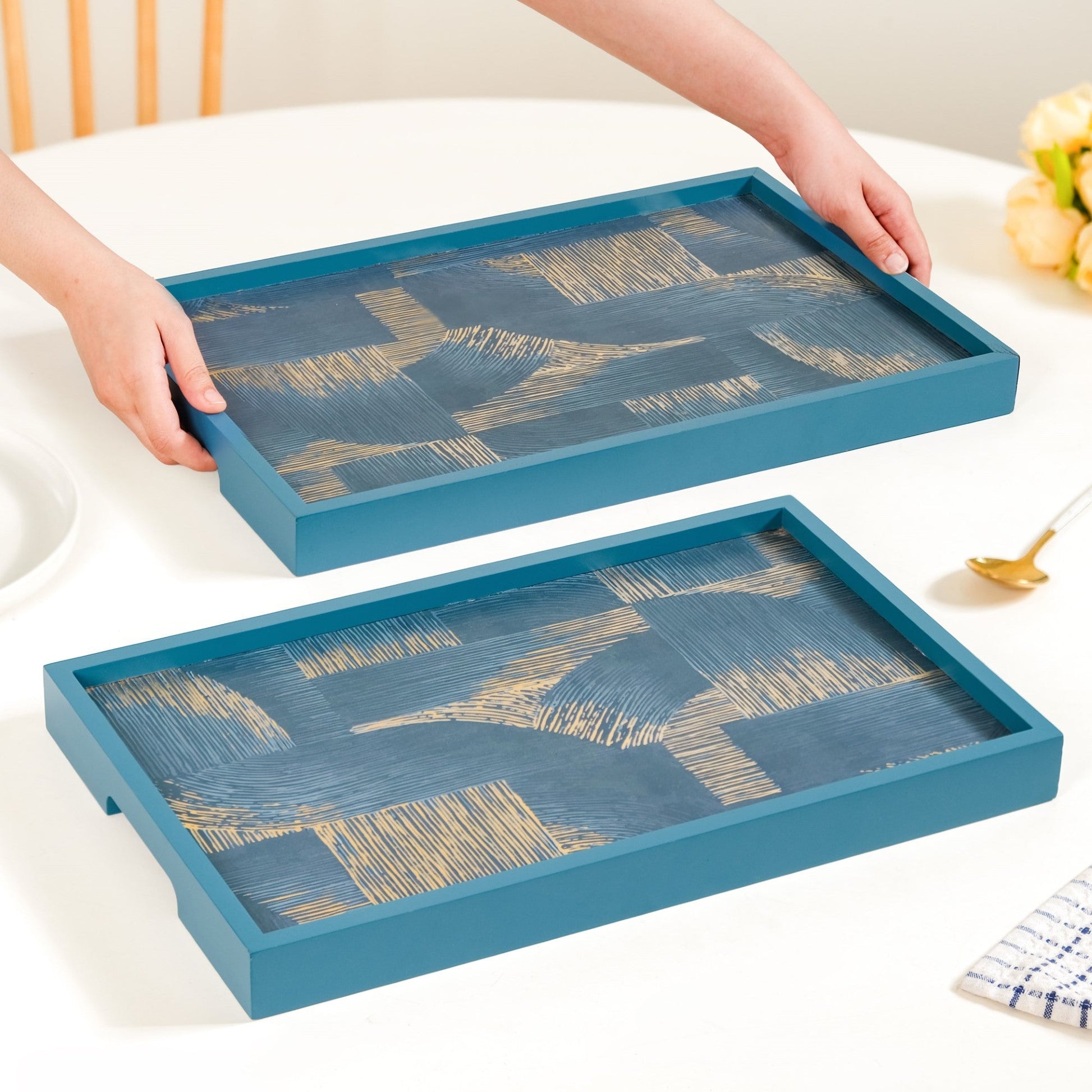 A fusion of art and utility, this wooden serving tray set is ideal for presenting beverages and snacks in style. Whether used as a tea tray or an elegant serving tray, this tray set is a must-have for modern homes.