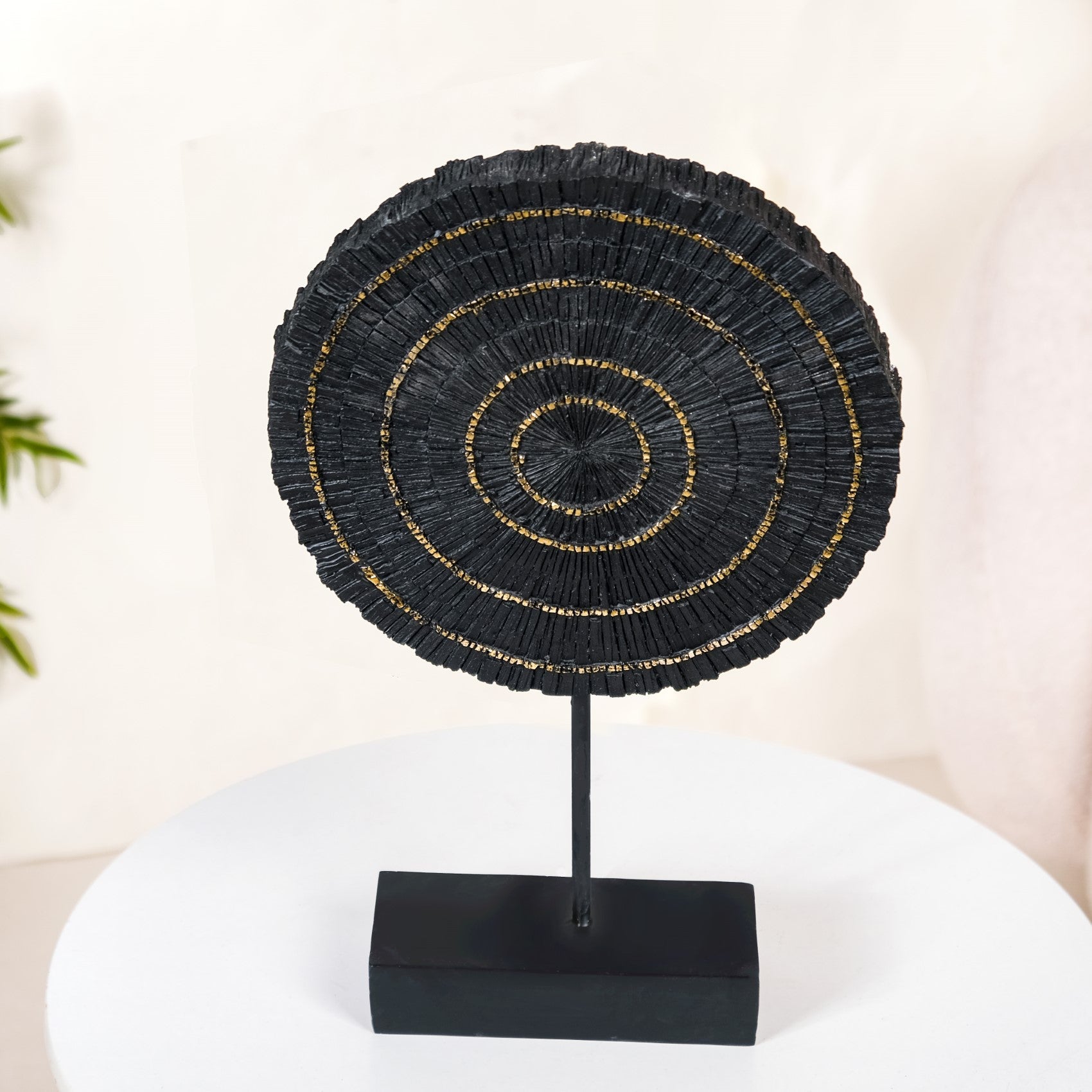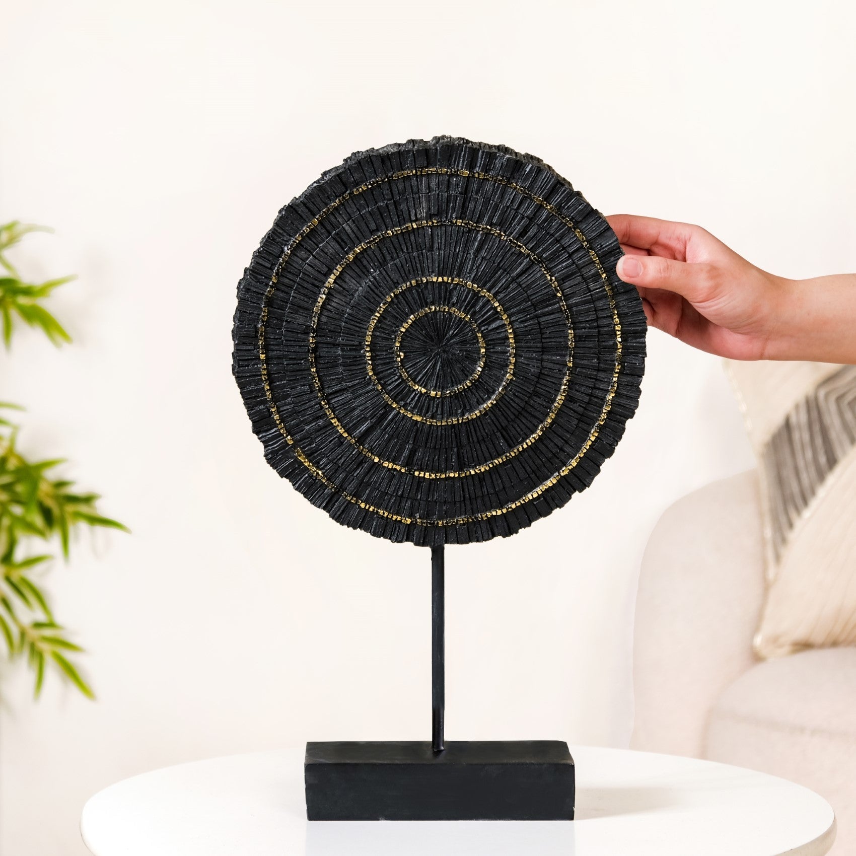 The sheer finesse of black paired with the radiance of gold creates a mysteriously elegant and profoundly captivating combination. And that's exactly what we've done with this beauty of a decor item. Introducing our modern mystique decor showpiece, the epitome of elegance. Made from high-quality resin, this showpiece is both durable and sustainable. As a result, this showpiece is a testament to our commitment to offering homes quality, stylish products that showcase the finesse of artisans while being kind to our environment. But this showpiece's true beauty lies in its design's details. The round, flat surface is adorned with an intricate wavy texture that draws the eye and invites touch, creating a dynamic play of light and shadow across its elegant black surface. Adding to its allure is a delicate, gold-coloured spiral that weaves gracefully through the textured waves, creating a stunning contrast that highlights the sophistication of the design. This spiral enhances the visual appeal and adds a touch of modernity to the piece, making it a versatile addition to any decor. Now that you know, there's only one thing left to do. Add this to your cart and enhance your home decor collection today!