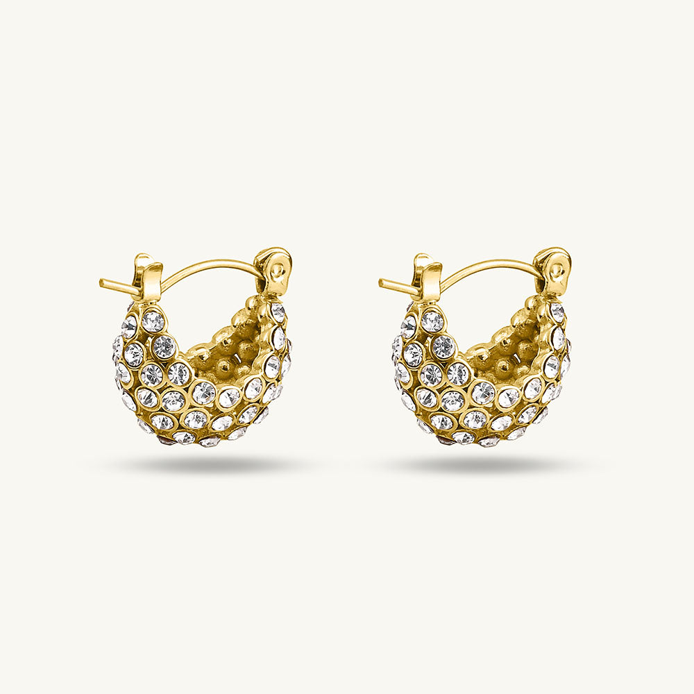 The Modern Studded Hoop Earrings combine contemporary design with subtle sparkle. Crafted in stainless steel with a radiant 18k gold tone and accented with cubic zirconia, these waterproof and anti-tarnish hoops bring refined elegance to everyday, office, or evening wear. Their sleek, studded silhouette makes them a versatile jewellery piece that enhances both casual and festive outfits.