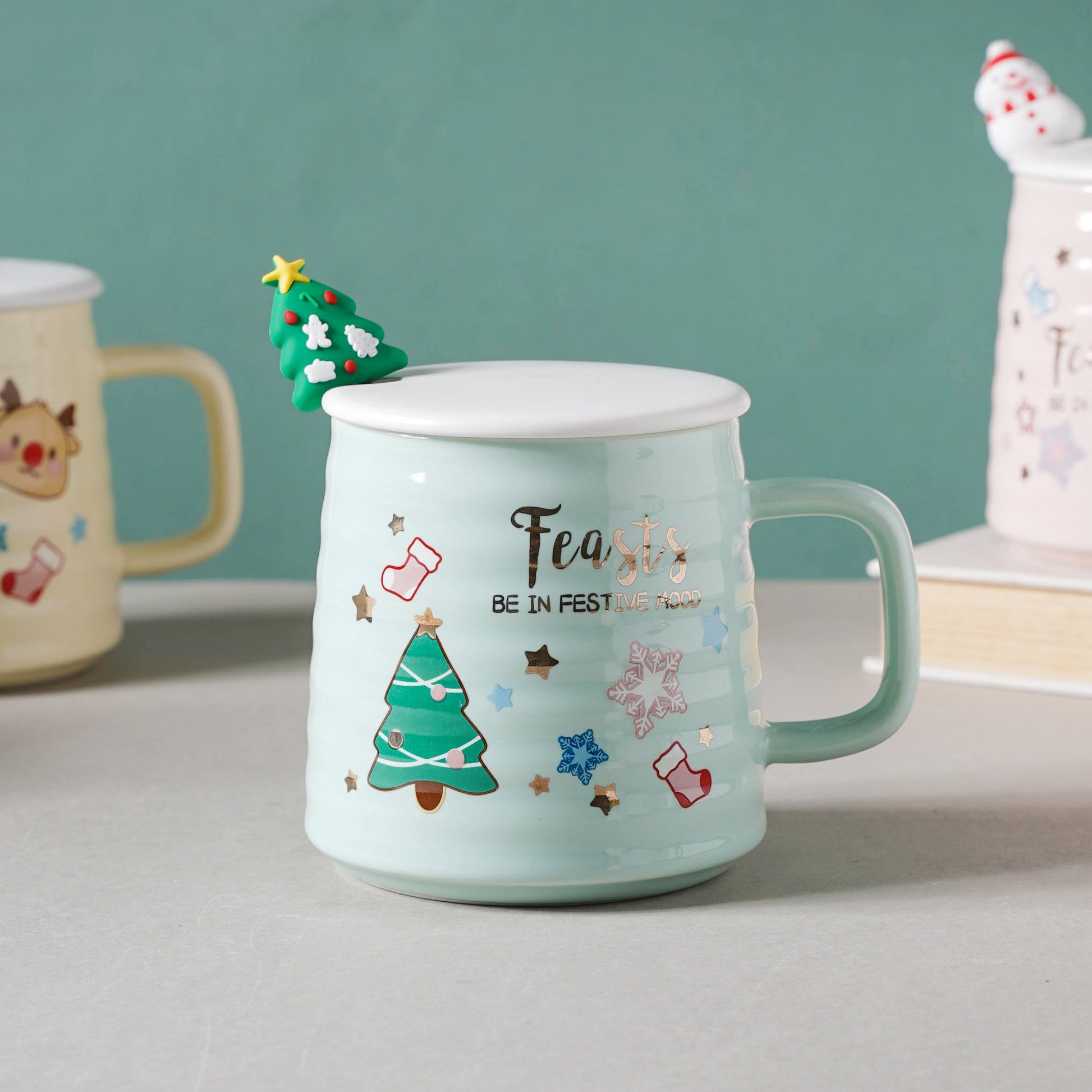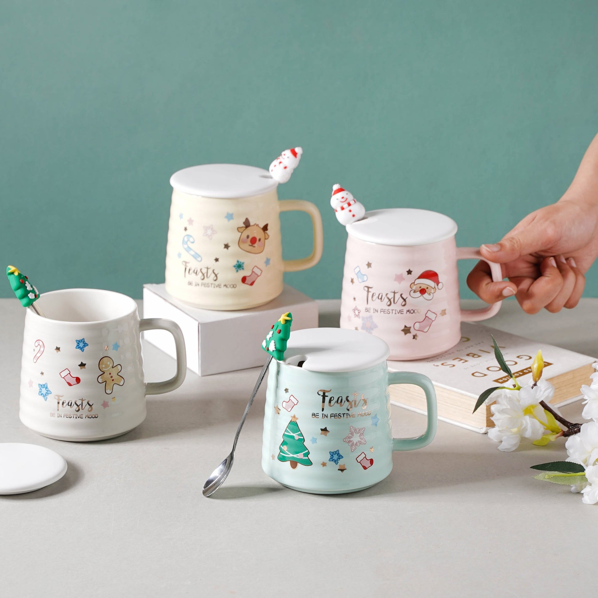 The textured ceramic cup with a lid and spoon has a Christmassy vibe and is a perfect festive decor to deck up the dining table. Available in four variants of yellow, white, green, and pink, the textured ceramic cup is both microwave and dishwasher safe. The striped mug features all kinds of Christmas goodies such as the gingerbread man, gift socks, and Christmas tree decorations. The colorful cups are the perfect blend of style and adorability.