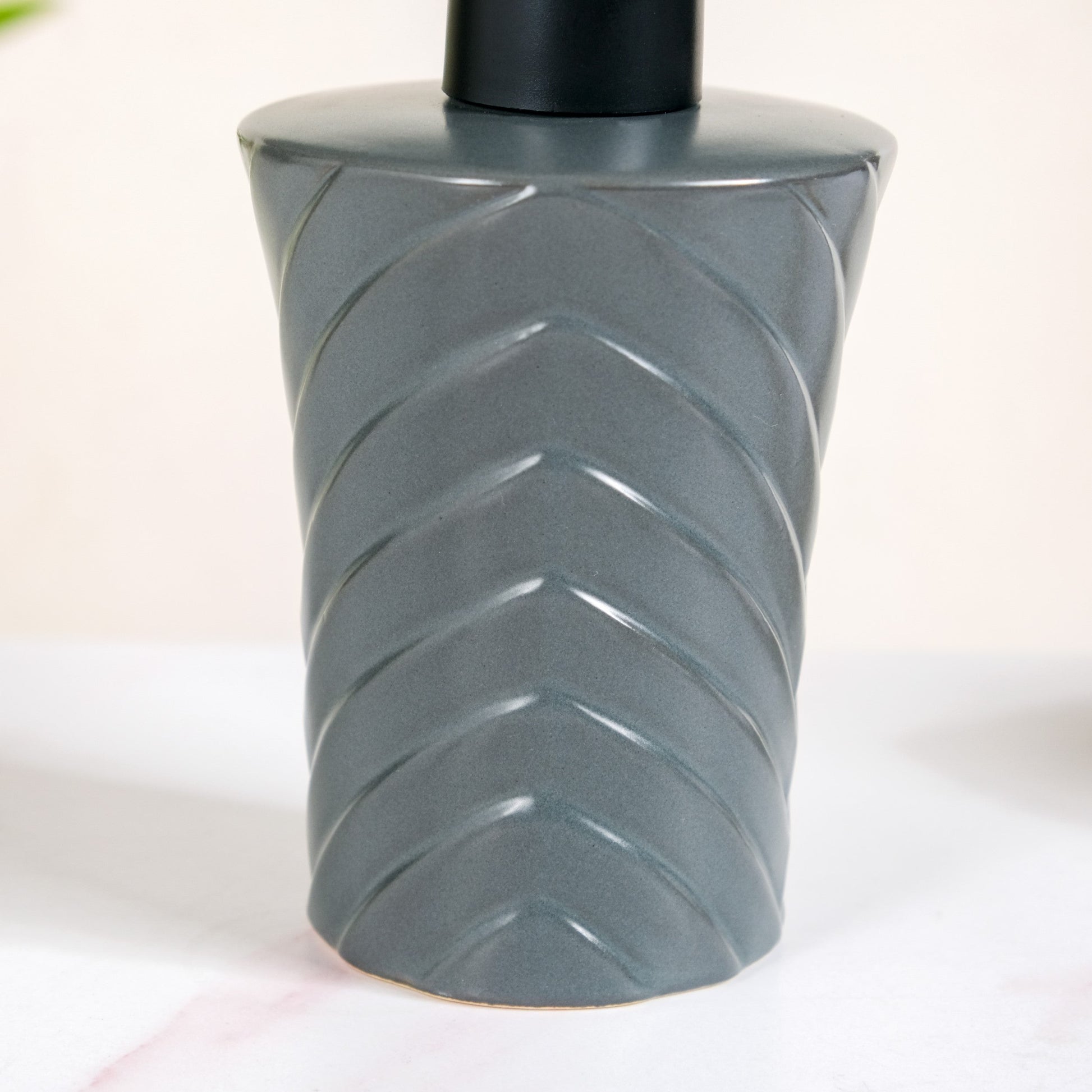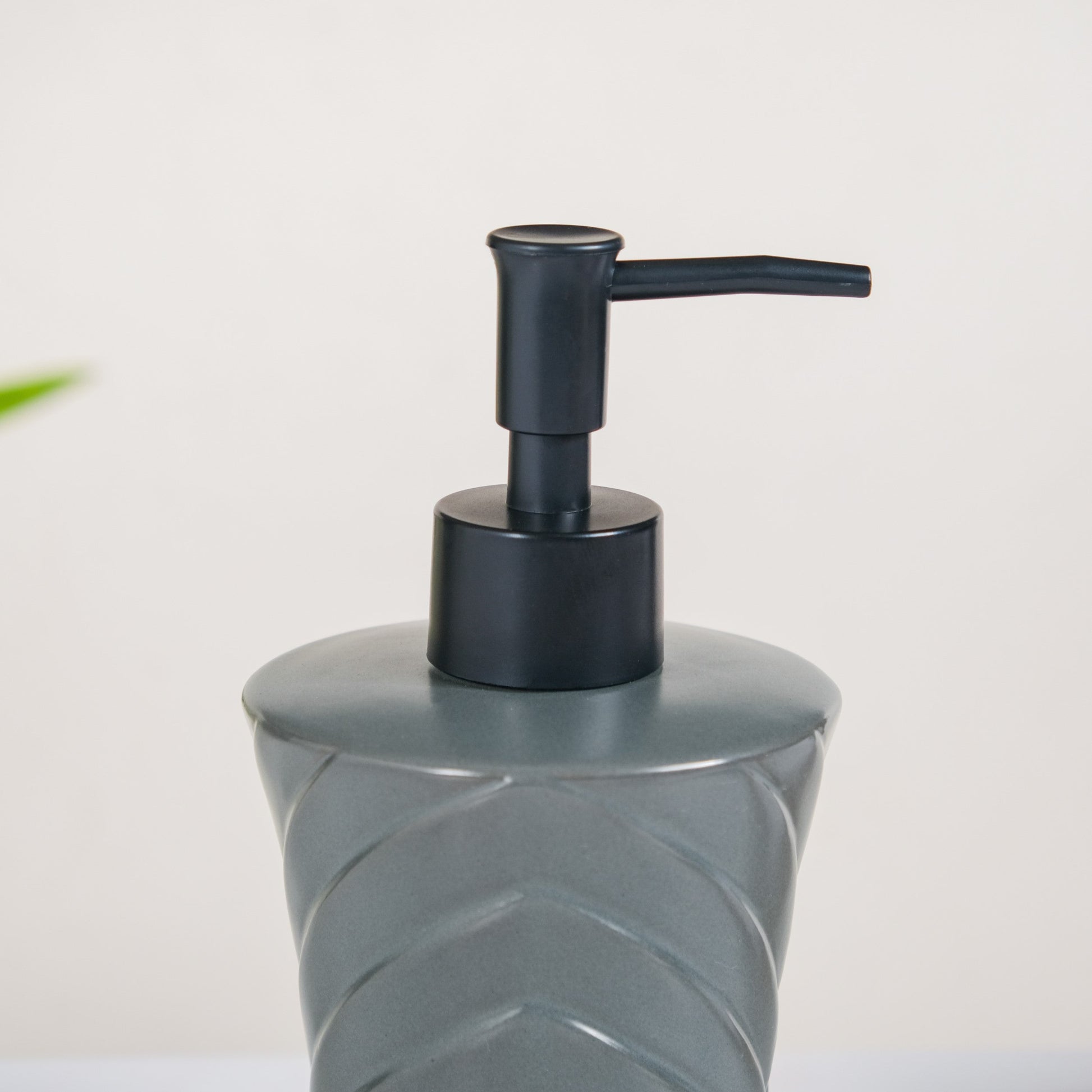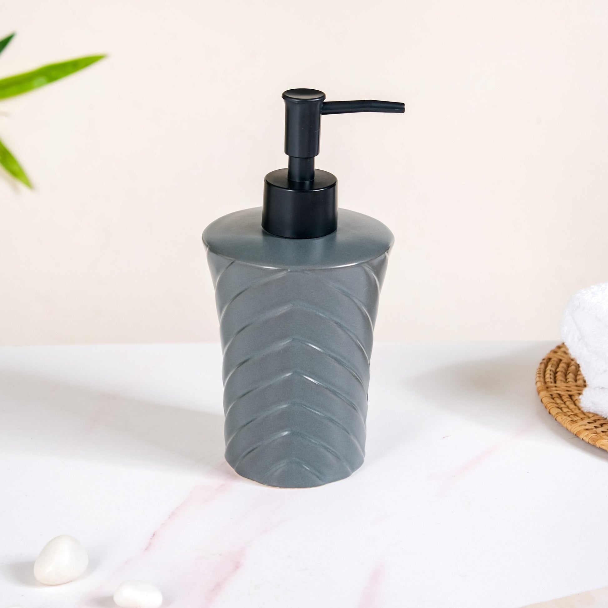 Discover the perfect blend of style and practicality with our ceramic soap dispenser. Made from durable ceramic material, the modern and streamlined handwash dispenser features a refillable pump and an eye-catching zigzag texture. The solid black colour and matte finish look of this liquid soap dispenser creates a statement, while the easy-to-pump nozzle provides hassle-free use for everyone, making it perfect for daily use. Whether you use it to house dish detergent or a fragrant body wash, the versatile liquid dispenser rises to every occasion.