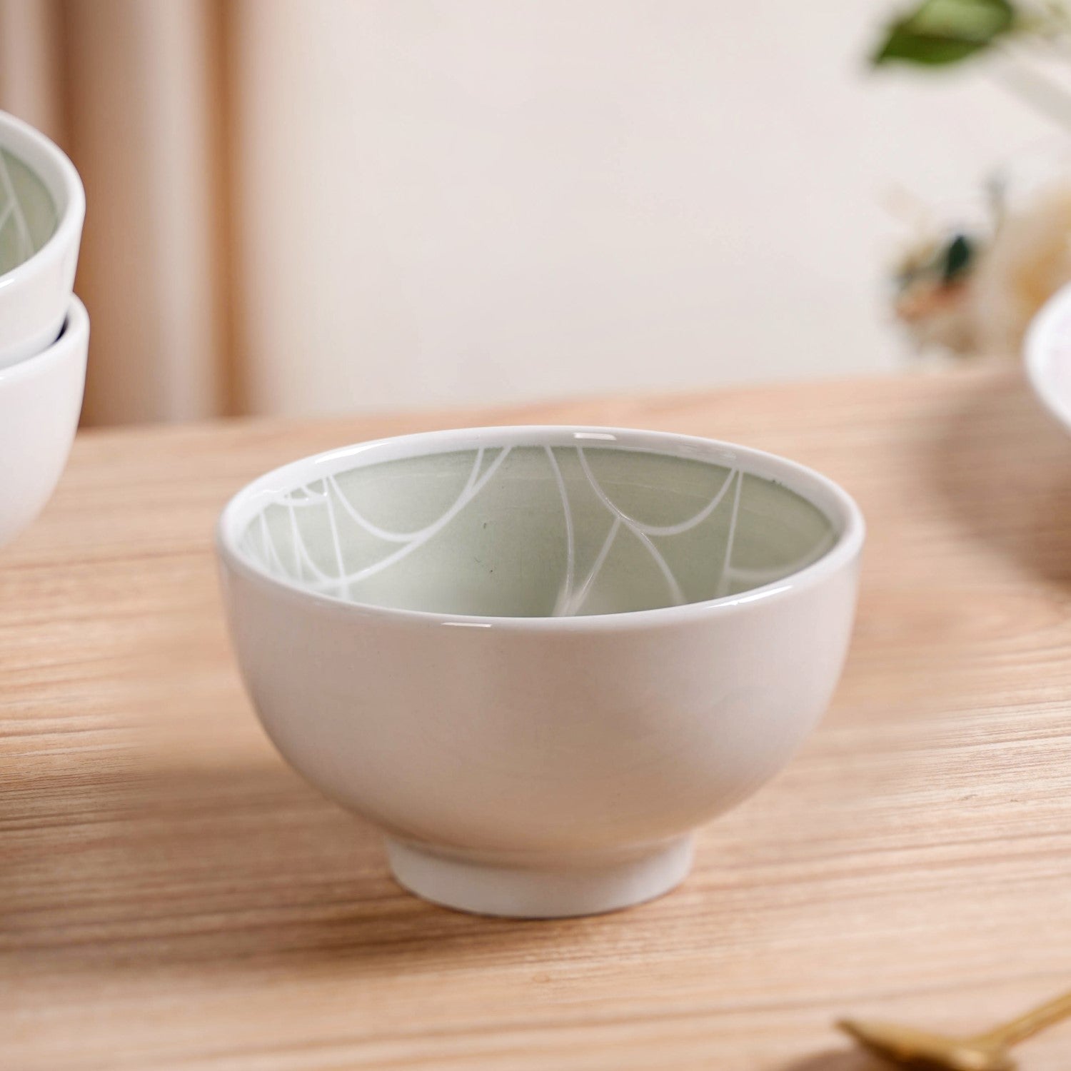 Design: The Monvia small bowls feature geometric Art Deco-inspired patterns that bring a touch of vintage charm to modern table settings. Each bowl showcases delicate geometric designs set against a matte soft mint green base, perfectly contrasted by a smooth white glossy exterior. Inside, the glossy textures highlight the hand-glazed detailing, making these bowls an artistic addition to your serveware collection.