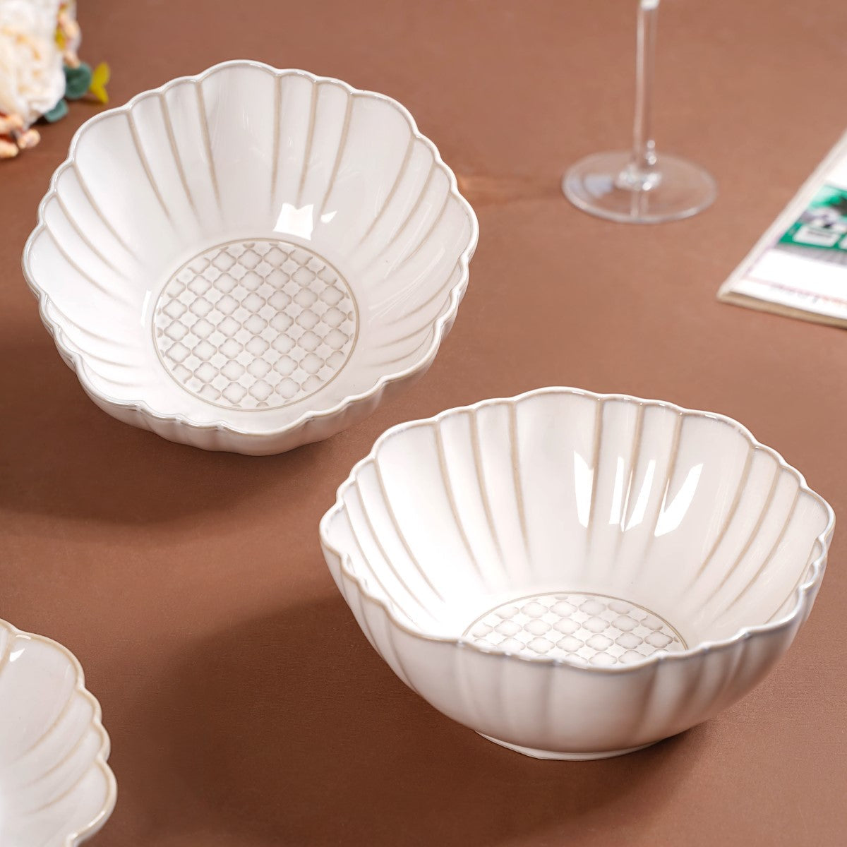 Moroccan Motif Serving Bowl Stoneware Ivory Set Of 2 1200ml