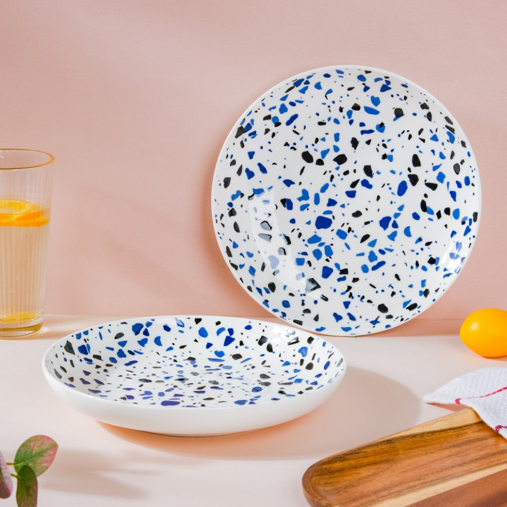 The set of two mosaic-patterned ceramic plates is a one-of-a-kind addition to any dinnerware collection. The plates feature a beautiful mosaic pattern that adds a lively mood to the table setting. The plate's abstract designs and colours complement contemporary and modern dining settings.