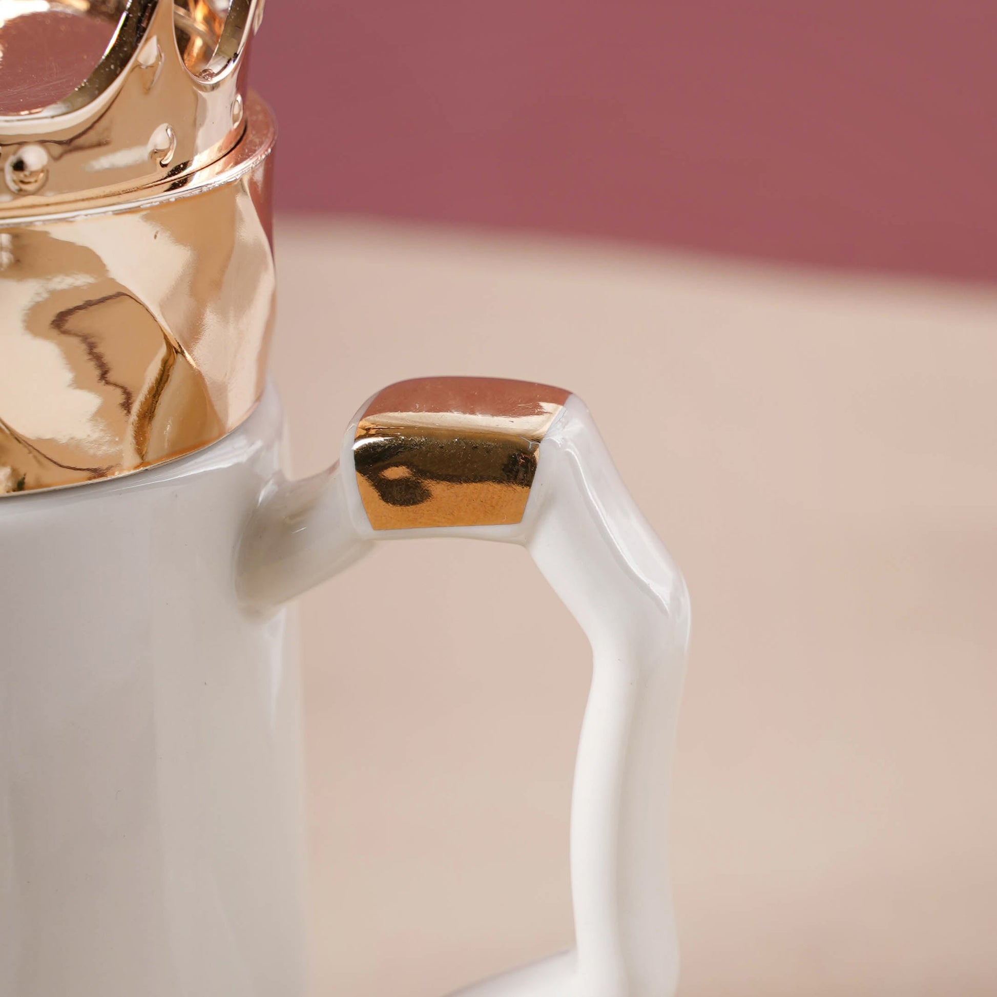 For a modern set-up, the ceramic cup with a crown lid looks quirky and trendy. The crown ceramic cup, which comes in green, blue, white, and black with gold trim, will brighten up the dining room or coffee table. The mugs' surface is textured and smooth, demonstrating the meticulous attention to detail that went into their creation. Every morning, the textured mug is meant to spark creativity and get you moving. Use the mug to serve coffee, tea, or hot chocolate, and use the lid to keep the liquid hot or cold for longer. The bright cups are the ideal combination of flair and adorability.