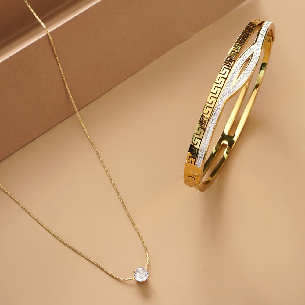 Multi Stone Q Clasp Bracelet & Delicate Diamond Studded Necklace Combo Set