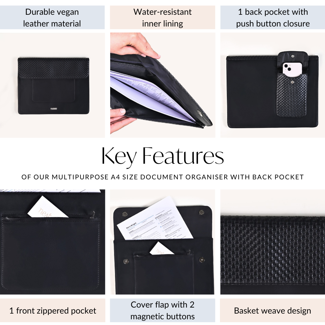Multipurpose A4 Size Document Organiser With Back Pocket