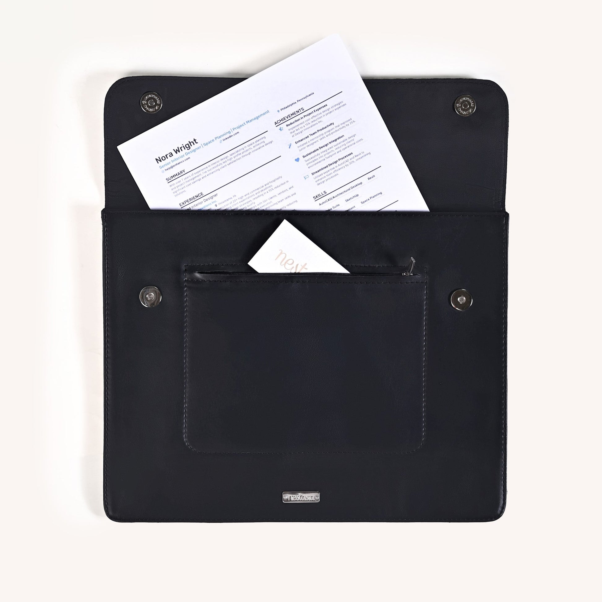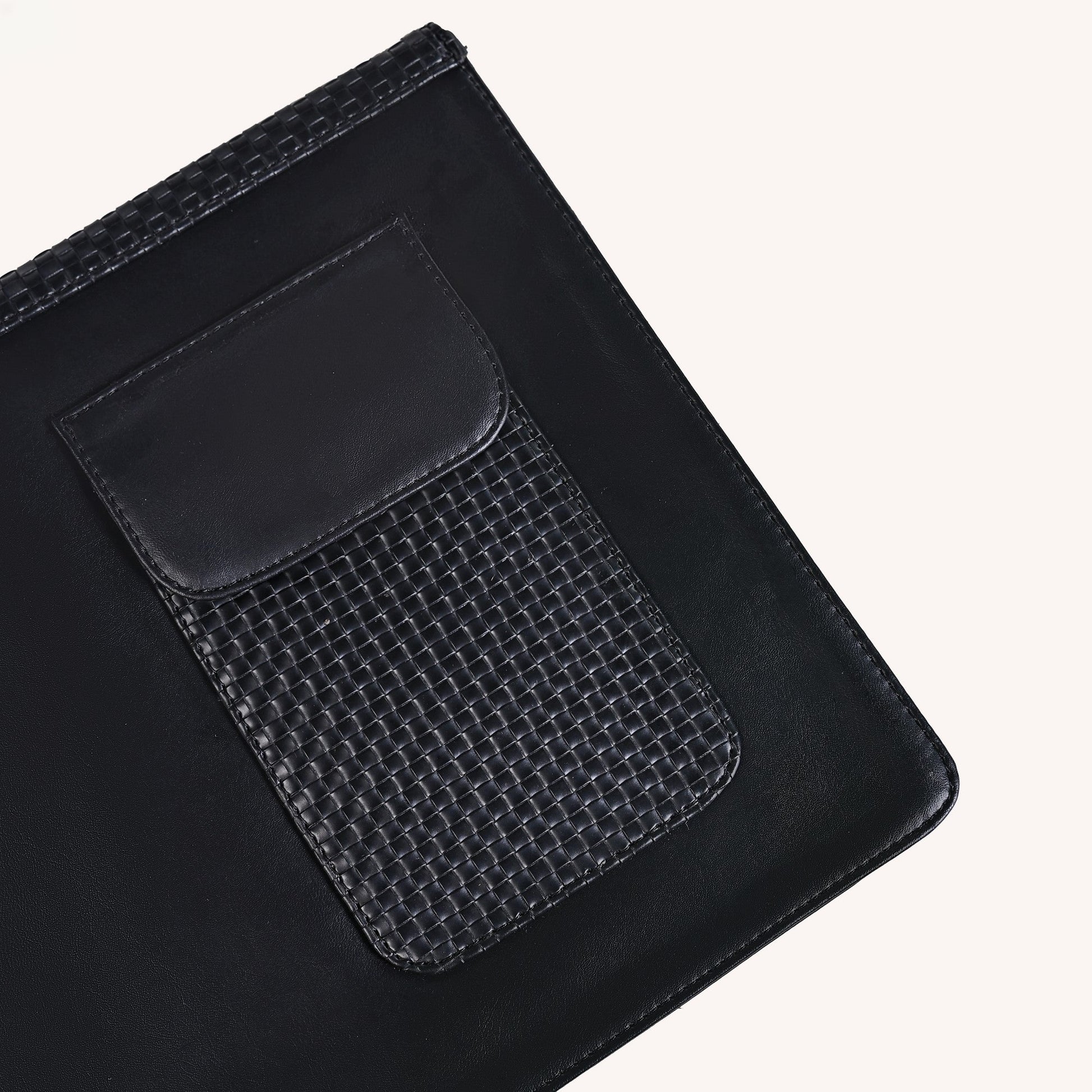 This sleek, black A4-sized document folder is designed to keep your important papers organized and secure in style. Perfect for professional settings, it’s the ideal companion for meetings or everyday office tasks.