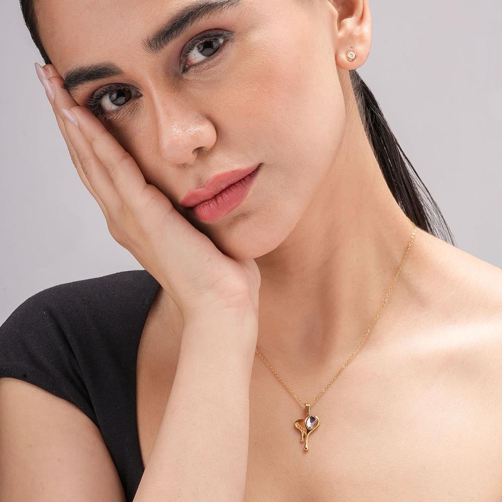 The Mystic Heart Pendant Necklace is a symbol of love, mystery, and timeless elegance. Designed with a golden heart outline that curves into a key-inspired charm, it features a dark stone accent that adds depth and allure. This necklace blends romance with a touch of mystique, making it the perfect accessory for women who love meaningful jewellery with a contemporary twist. Lightweight and versatile, it transitions seamlessly from casual outfits to dressy evening looks. A modern romantic keepsake, this necklace is an effortless way to carry charm and elegance every day.