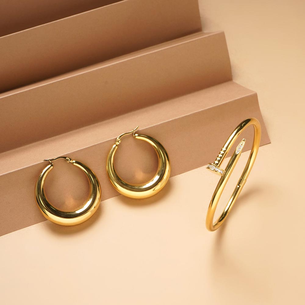 Nail Bangle Bracelet & Chic Chunky Hoop Earrings Combo Set