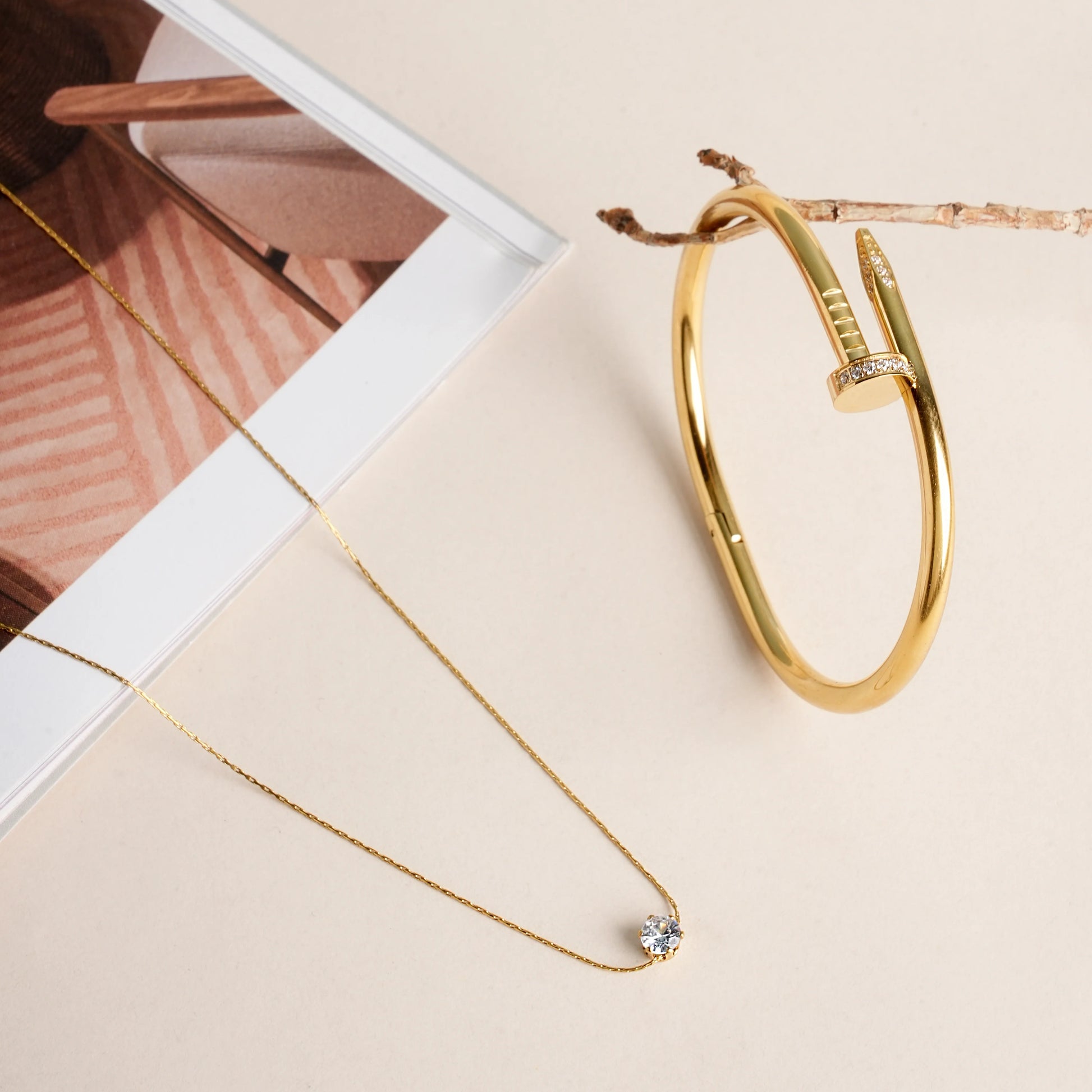 Nail Bangle Bracelet & Delicate Diamond Studded Necklace Jewellery Set