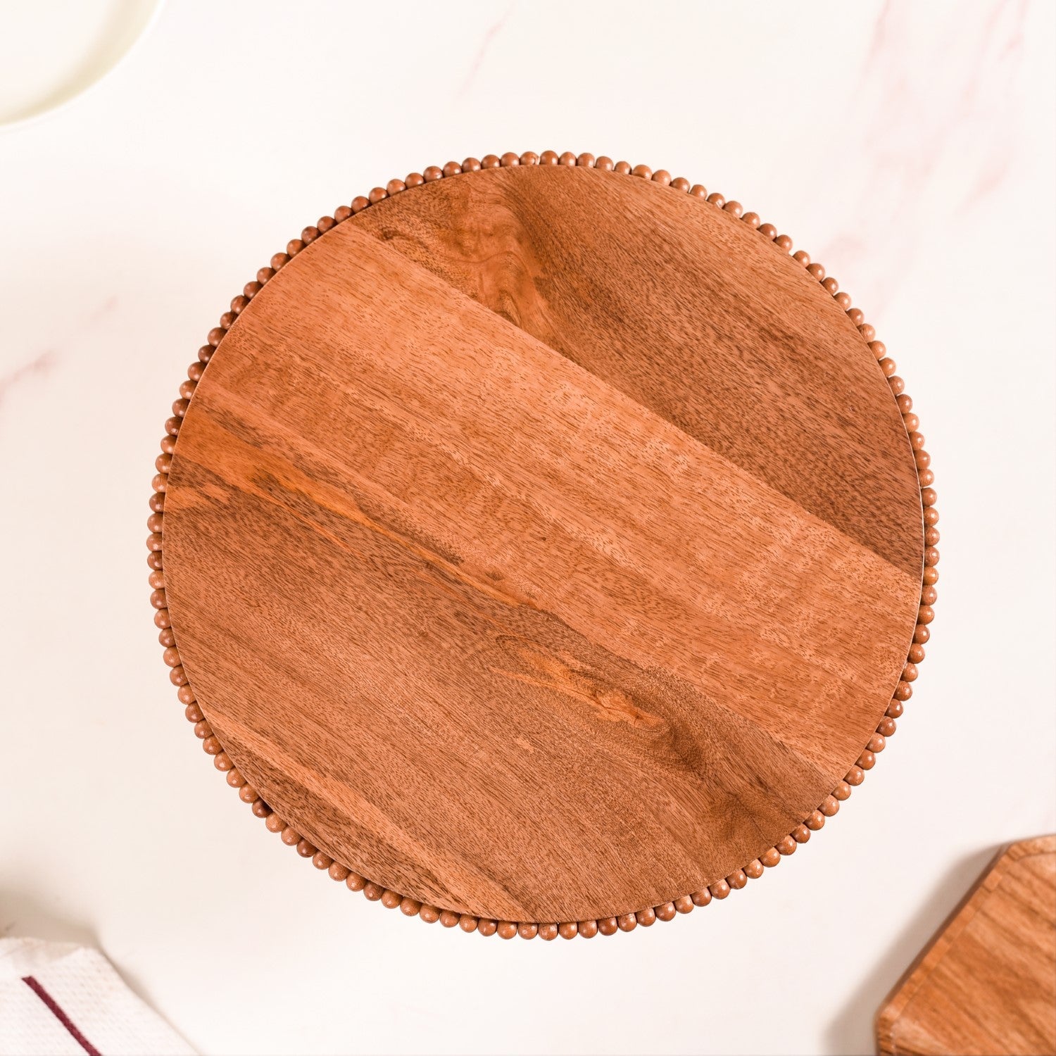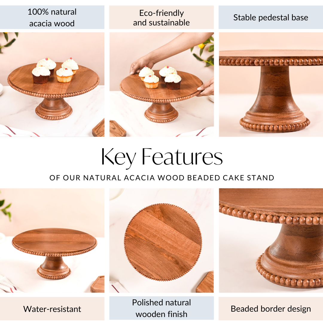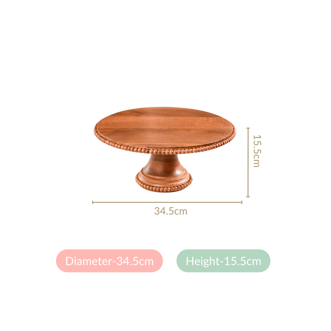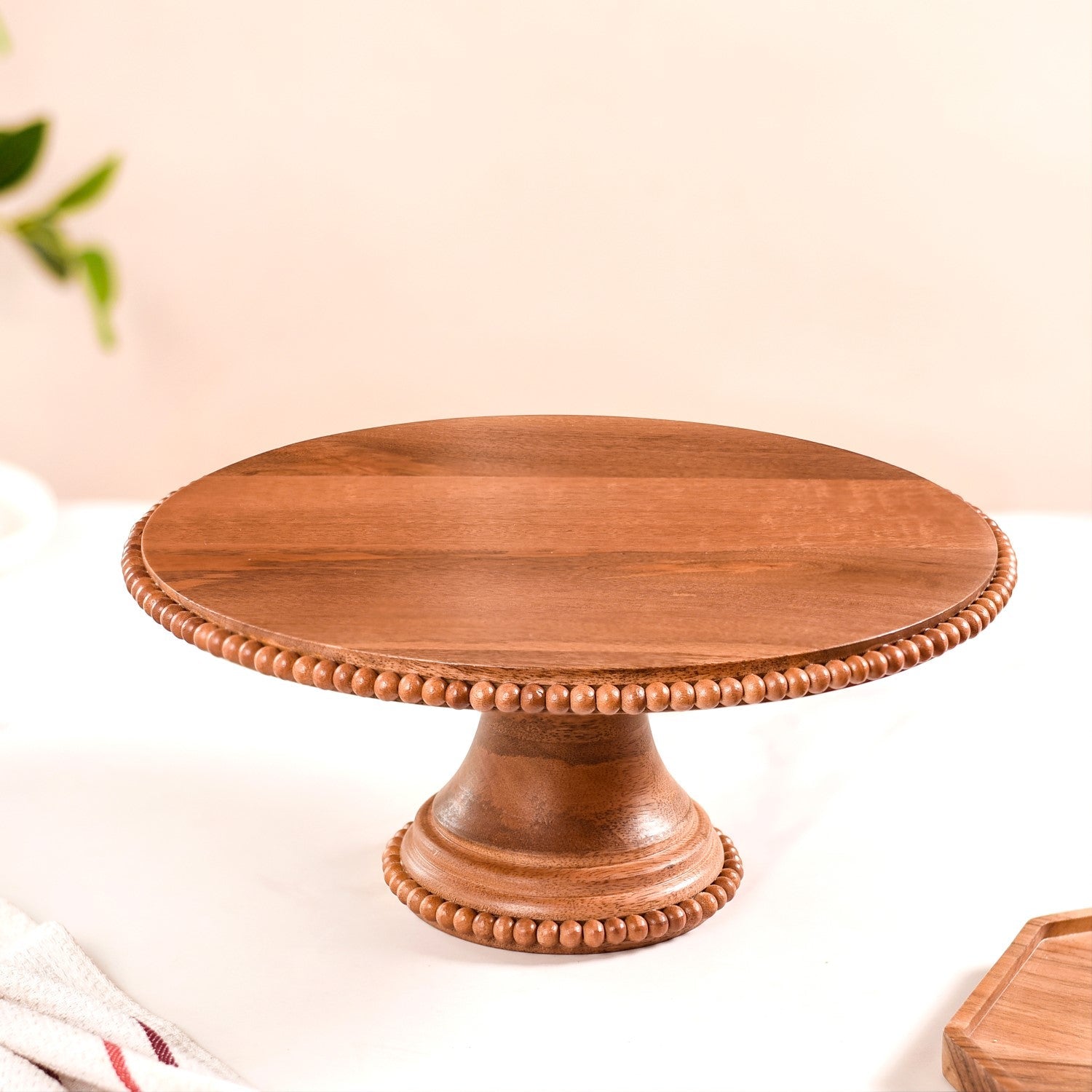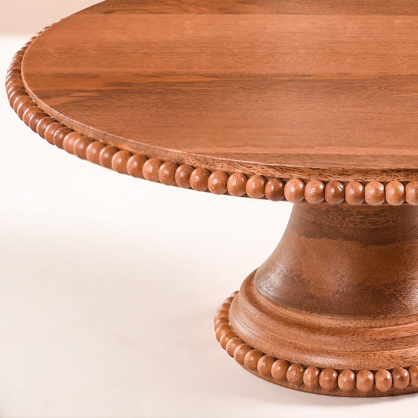 Natural Acacia Wood Beaded Cake Stand 13 Inch