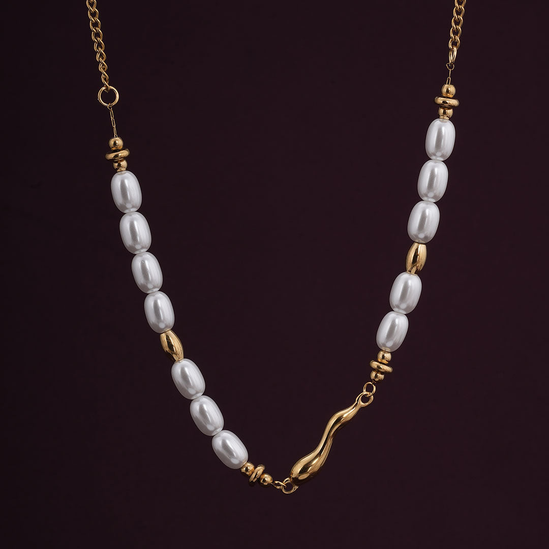The Natural Pearl Gold Necklace is a timeless and elegant jewellery piece, featuring lustrous white pearls set along an 18k gold-plated stainless steel chain. Perfect for layering or wearing solo, this necklace adds sophistication and classic charm to any outfit. Ideal for both casual and evening ensembles, it brings a refined, contemporary elegance to your jewellery collection.