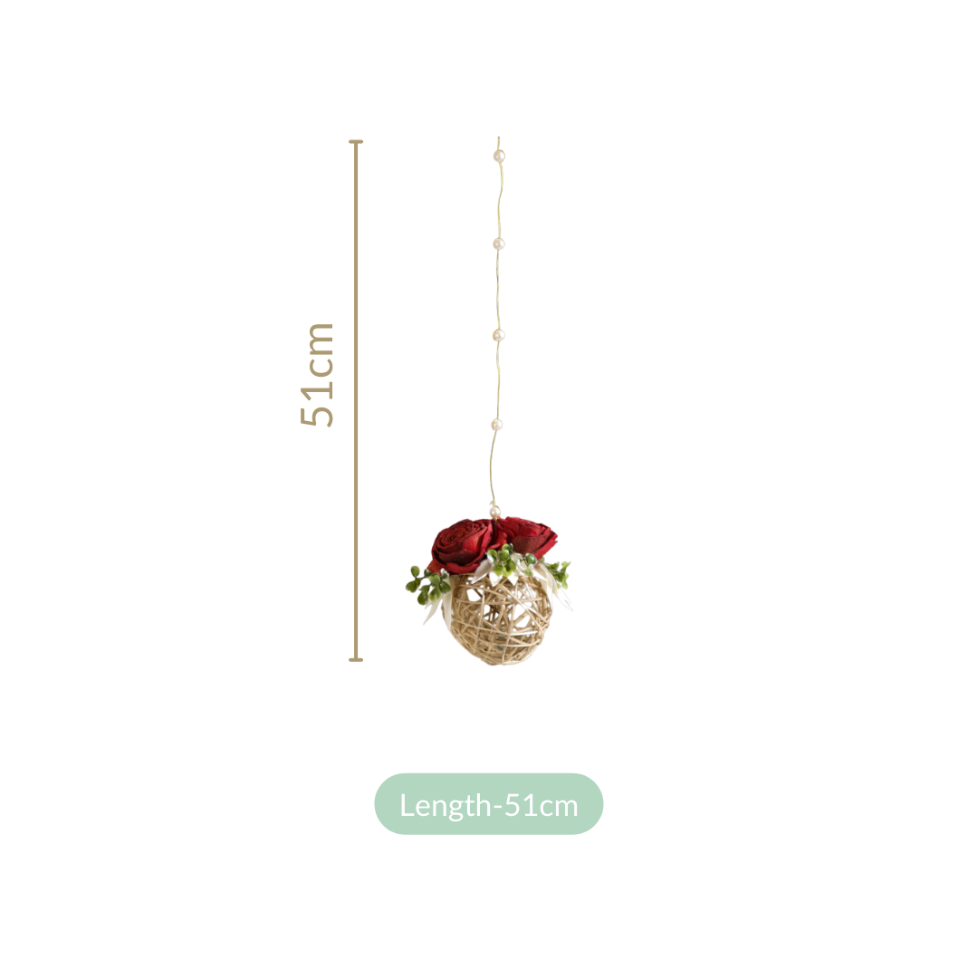 Benefits: Crafted from high-quality materials, these wall hangings include durable golden metal wire and artificial pearls for lasting beauty. Red sola pith roses and naturally dried palm leaves ensure longevity, while artificial green leaves require minimal maintenance. Organic rattan balls add texture and eco-friendly appeal.