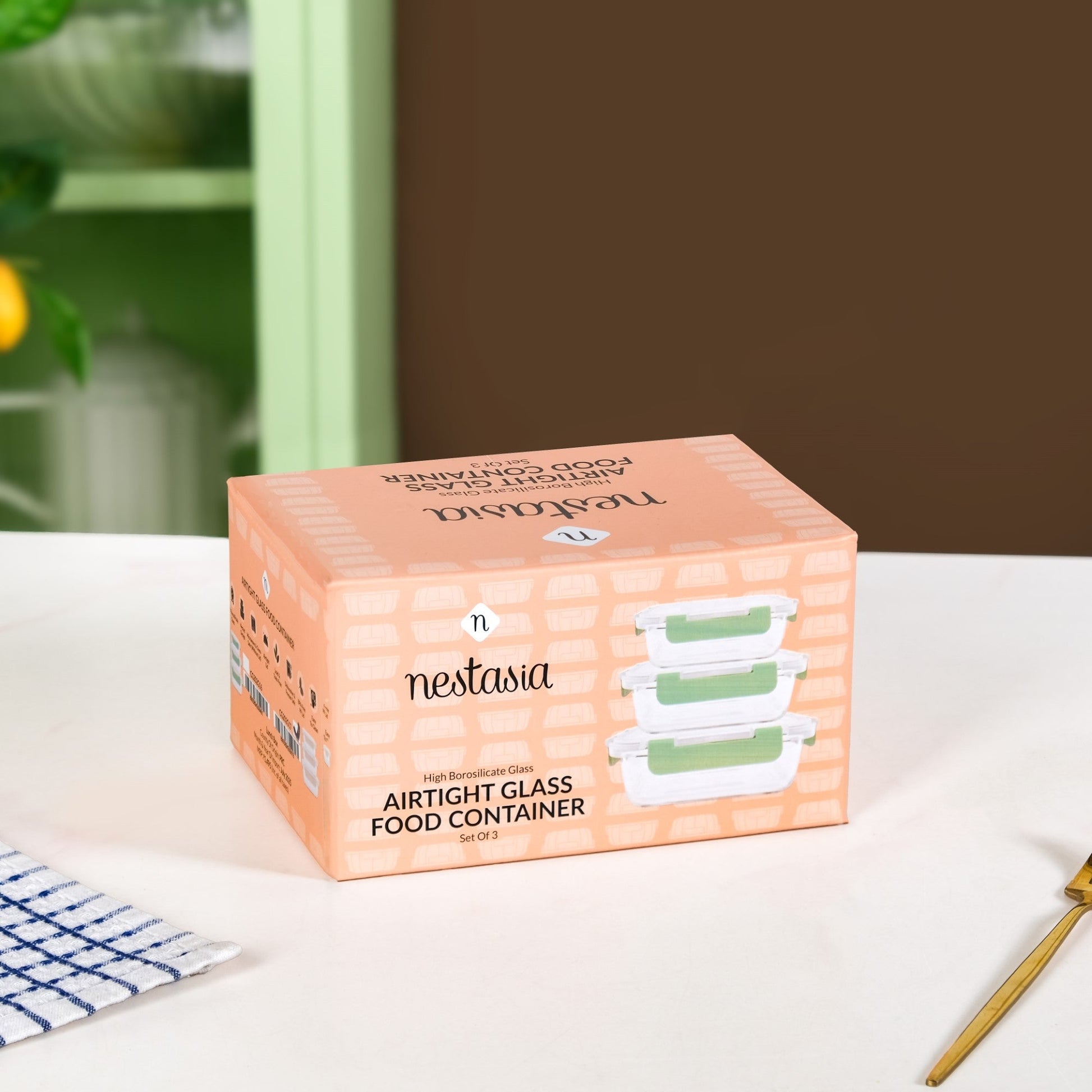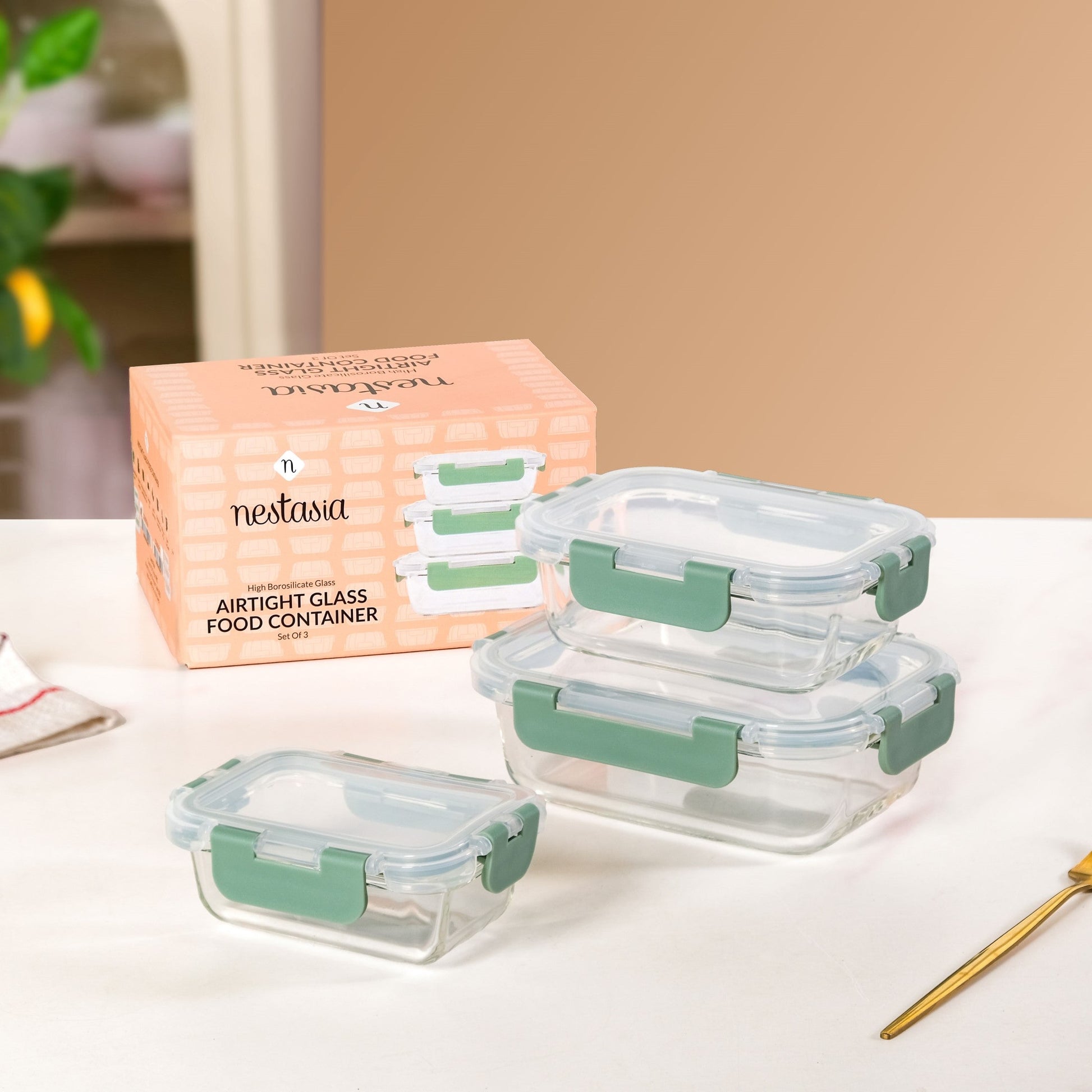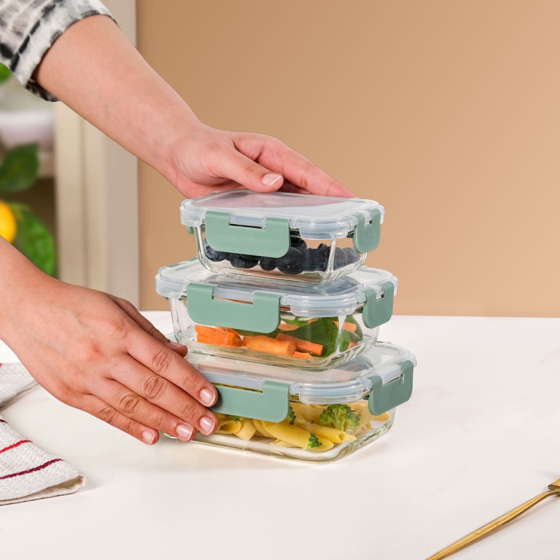 Nestro Microwave Safe Airtight Storage Box Set Of 3 Green