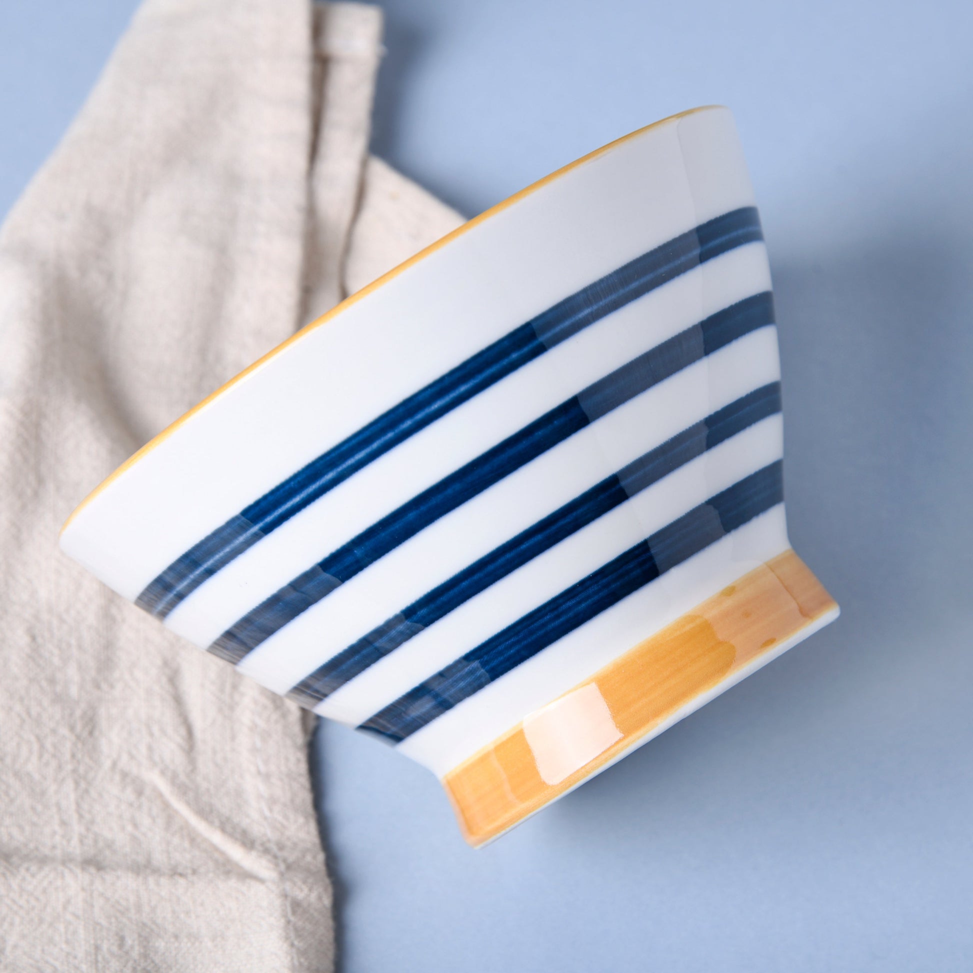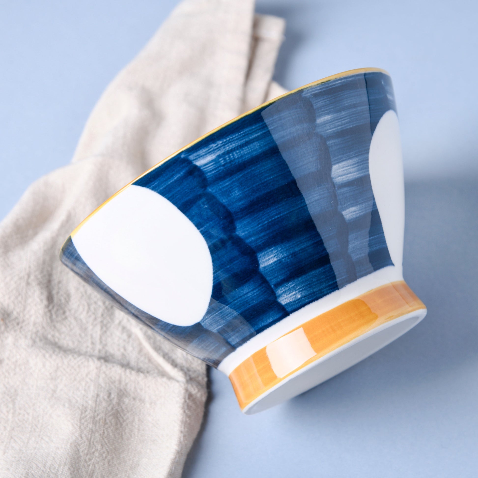 Nitori bowls can be used to serve breakfast cereals, snacks, sweets, or even vegetables and broth. The body of the Nitori bowl has a unique design, and the subtle mix of blue and white highlights the refinement presented that can be reflected in every serving. Any tableware collection would benefit from the addition of the ceramic bowls. Combine a little ceramic bowl with a contemporary design dinner plate to produce a set. The bowl is elevated and has an ochre rim, which draws attention to its distinctive design.
