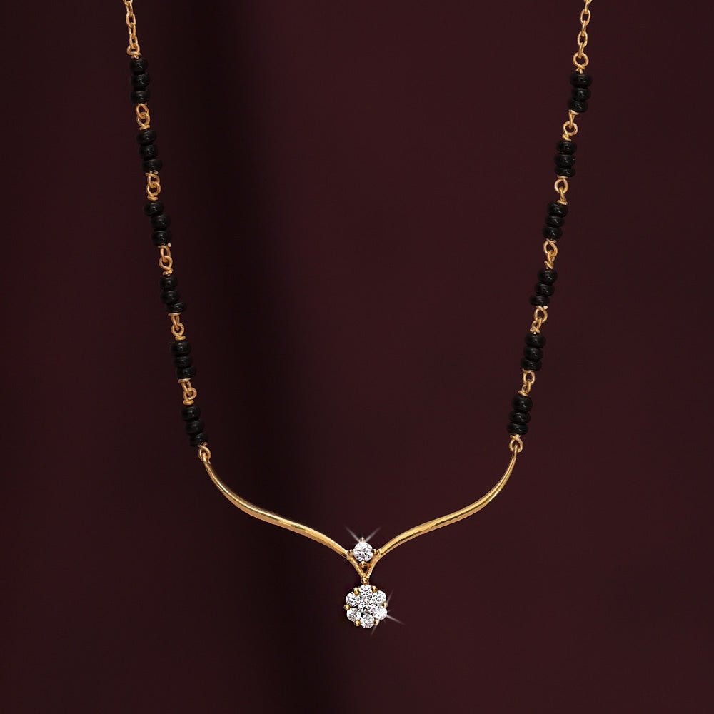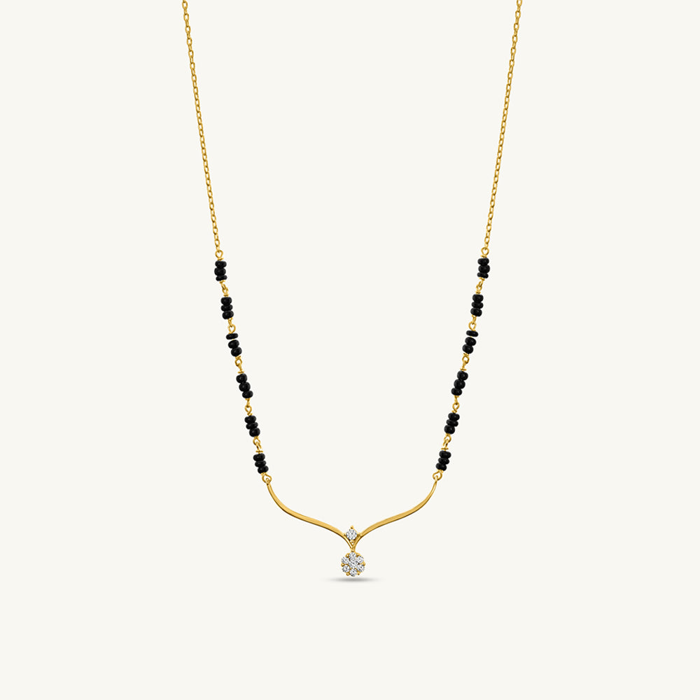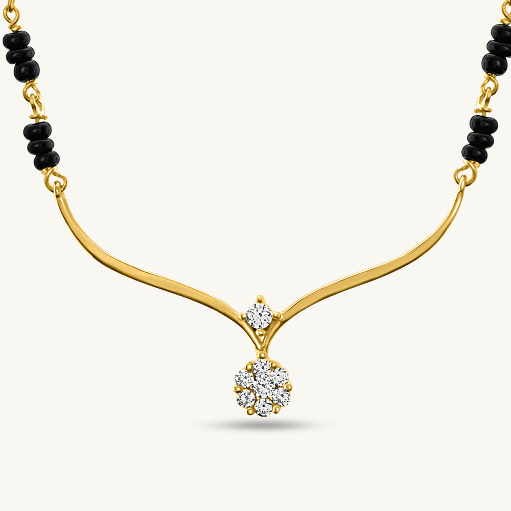 The 925 Sterling Silver Niyati Diamond Mangalsutra is a symbol of eternal love and modern elegance. Crafted in sterling silver with a luxurious 18k gold tone finish, this mangalsutra features brilliant cubic zirconia diamonds that add timeless sparkle. Lightweight yet durable, it beautifully blends tradition with a modern touch, making it perfect for daily wear or special occasions. A meaningful jewellery piece for women who value grace and style.