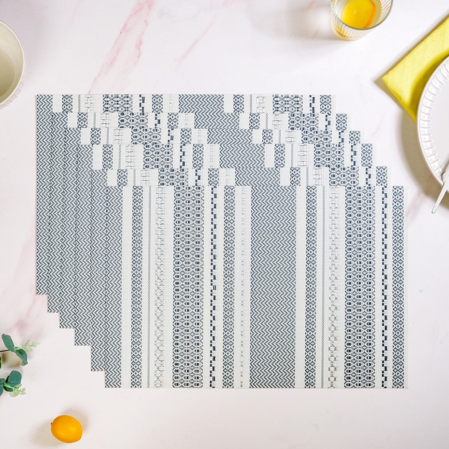 Design: This set features a stylish geometric design that enhances the beauty of any dining space. Made from high-quality PVC, these dining table placemats are both durable and easy to maintain, offering convenience with every use. The textured surface prevents slipping, ensuring your table mats stay firmly in place during meals. This set of six ensures you have enough placemats to accommodate your family and guests comfortably.