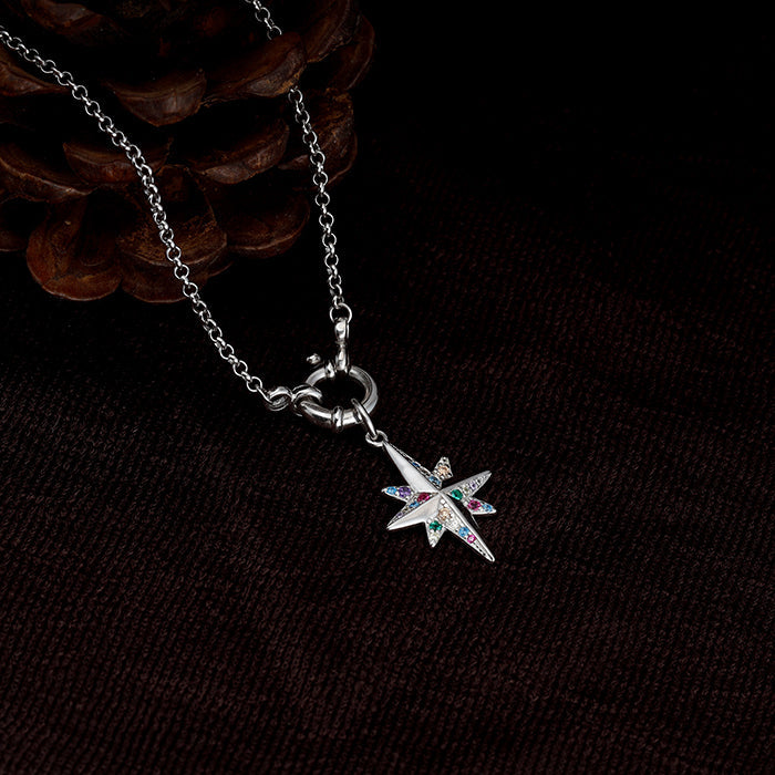 The Silver Hued Polaris Necklace has a colourful silver charm imitating the polaris symbol.
