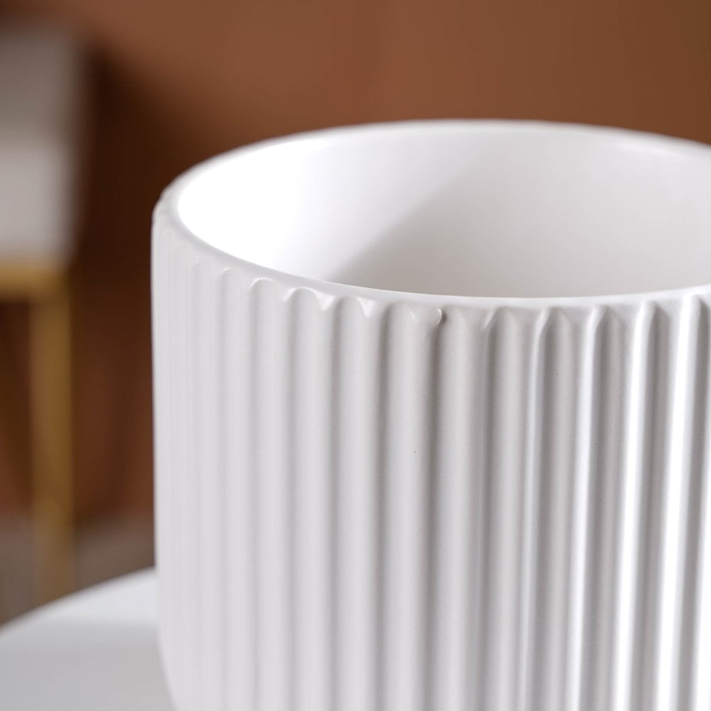 The textured, pastel-hued, ribbed white vase will be your ideal selection if you're looking for a vase that will serve as an attractive modern showpiece. Unquestionably, those who admire innovative interior design adore it for its matte and smooth surface. When positioned on a mantel space, cabinet, console table, coffee table, window sill, or in the living room, bedroom, or sitting area the vase's neutral colour best enables it to merge with other vivid colours.