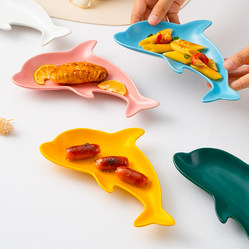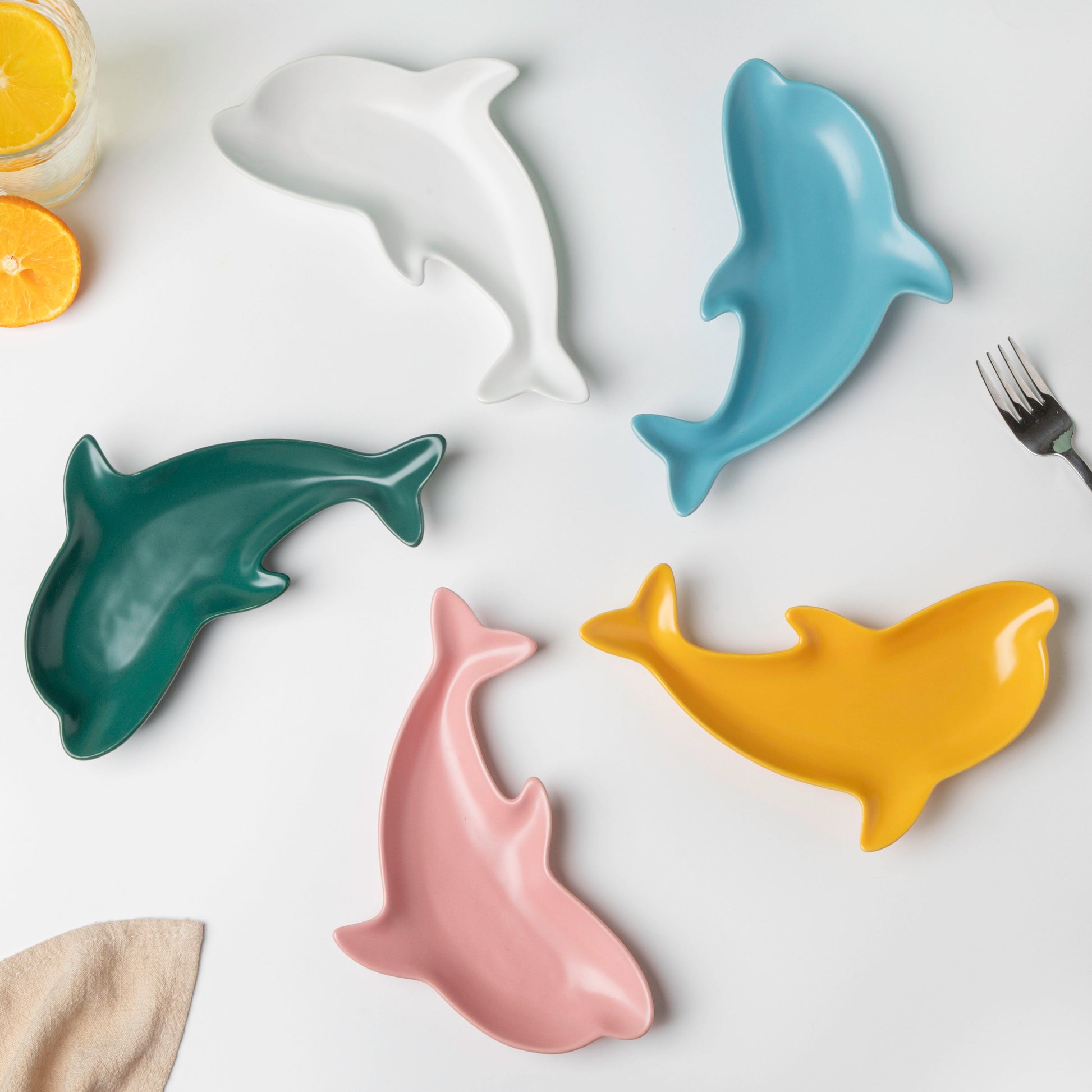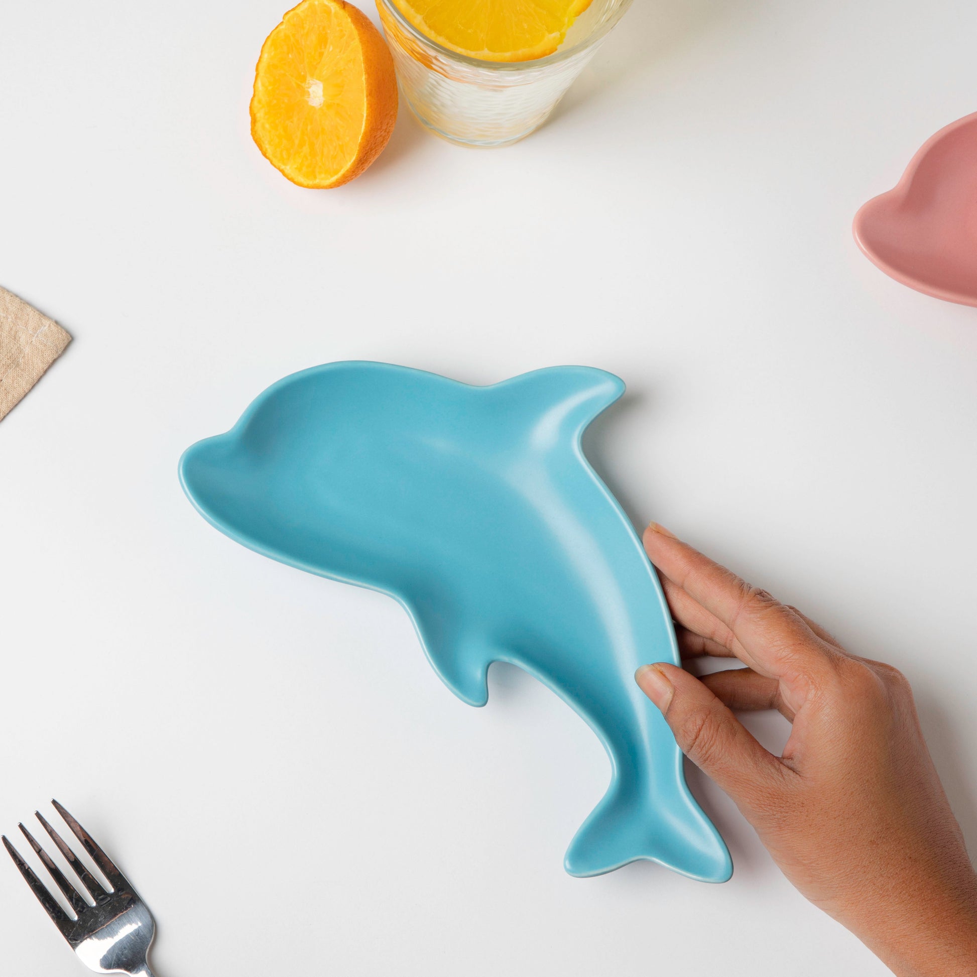 Perk up the pool party table setting with this bright blue dolphin plate. Serve momo, fish fingers, chips, chicken nuggets, or chicken fillets on the dolphin plate. One can use this versatile ceramic plate as a starter plate, salad plate, side plate, or even a trinket dish.