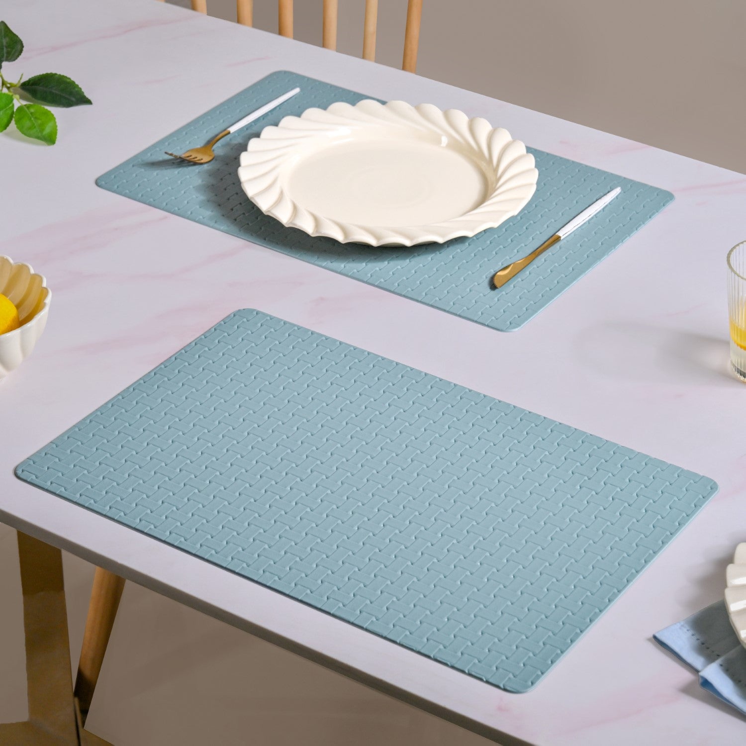 Design: Made from durable PVC, the set includes 6 thick rectangular table mats in a rich ocean blue hue. Each piece showcases a bold basket weave pattern that adds texture and a tactile finish, while the structured design ensures each mat sits flat on the table. Sized to accommodate a full place setting, the mats feature a water-resistant, reversible surface with a non-slip textured underside for added grip. The vibrant colour and sturdy material make these table mats suitable for everyday meals and dressed-up dinner parties alike.