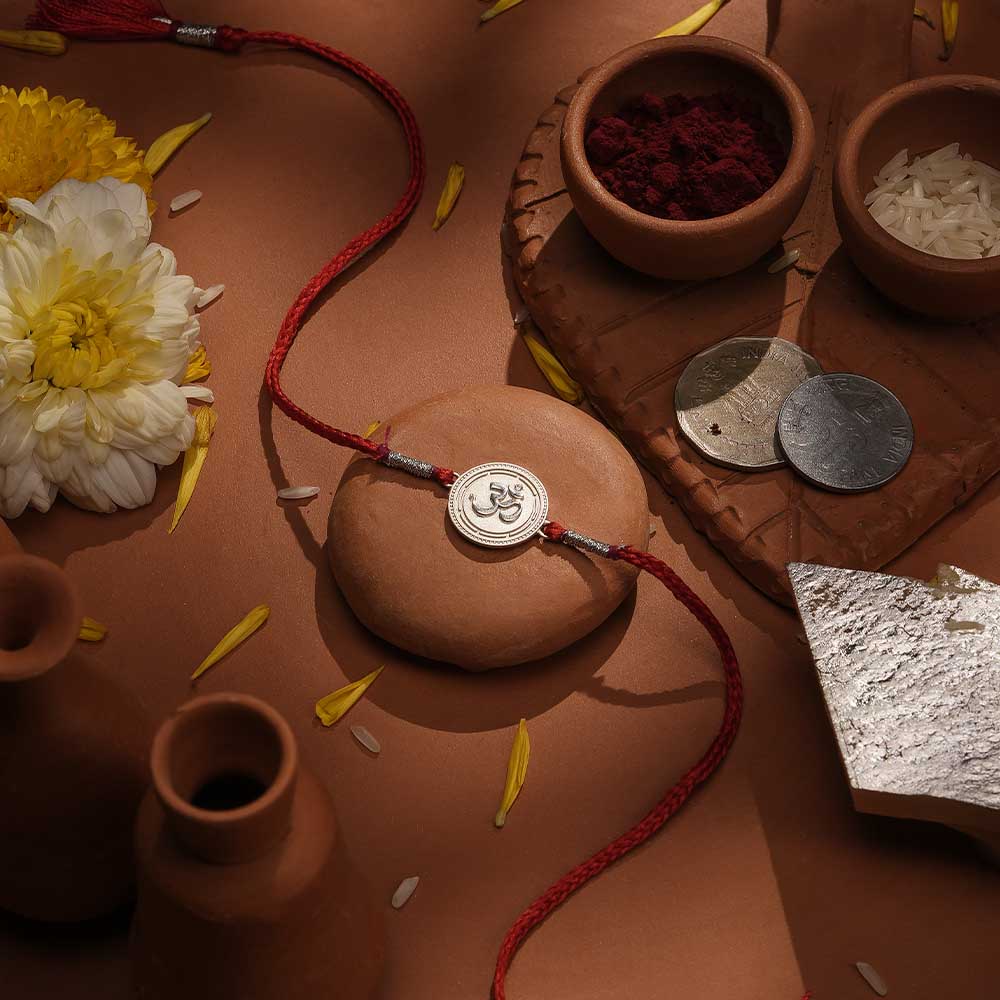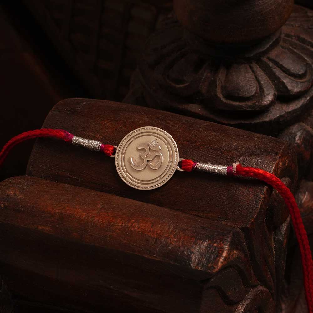 Gracefully crafted with a serene Om design, this Rakhi is embedded with a 0.01 ct lab-grown diamond on a 999 silver coin. A spiritual and luxurious thread of protection and love, it radiates positivity and peaceful energy.