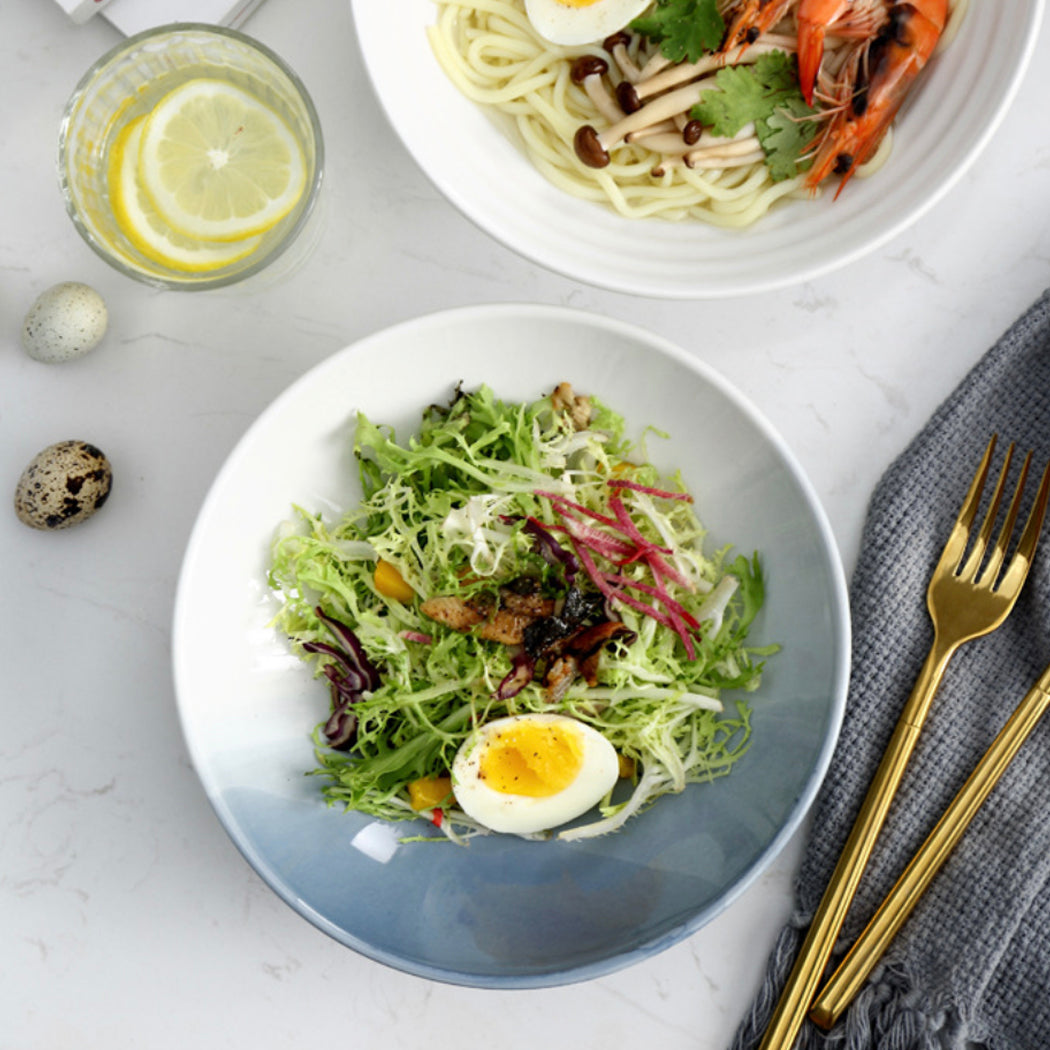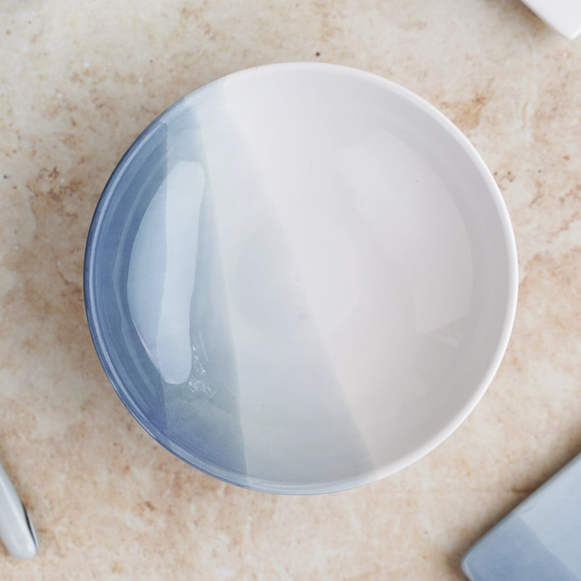Ombre dish is a grey serving dish which can also be used as a ramen bowl or a gravy bowl. The ceramic bowl comes with an ombre white and grey colour pattern which can elevate any modern table styling with its modern hues. The food bowls has a depth which makes it just the right fit for being used as a serving bowl along with ombre plates and bowls of the same pattern.