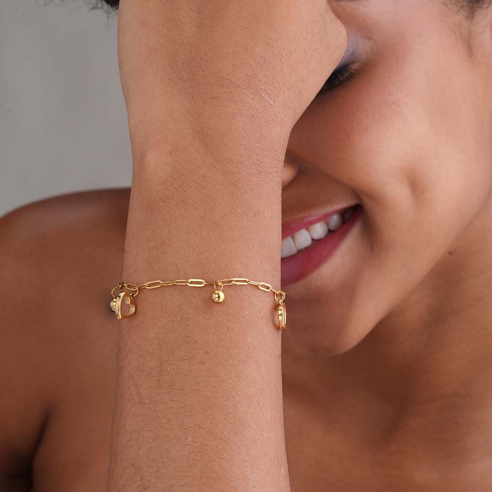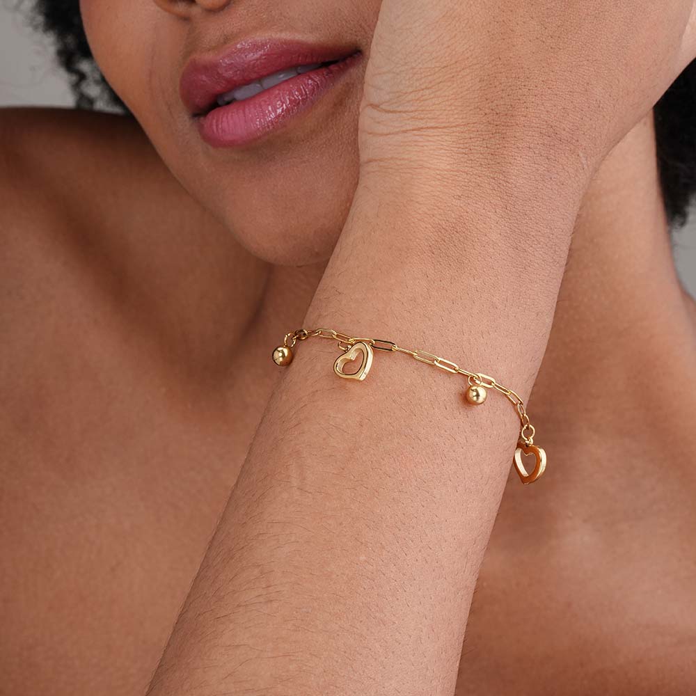 The Openwork Heart Charm Bracelet celebrates love through delicate craftsmanship and timeless design. Crafted in stainless steel with 18k gold plating, its intricately carved heart motif embodies romance and grace. Designed to be waterproof, anti-tarnish, and skin-friendly, this bracelet adds a touch of sentiment and shine - perfect for gifting or elevating your everyday jewellery collection with effortless charm.