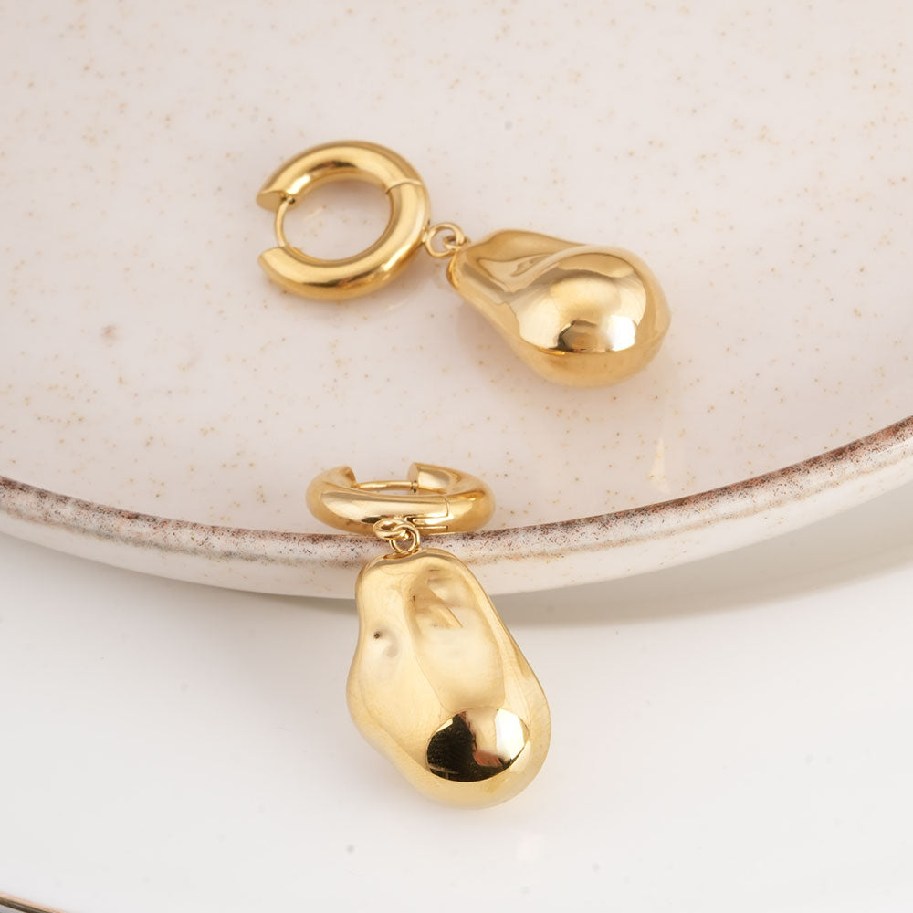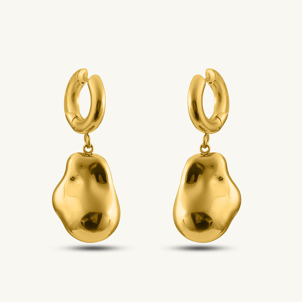 Organic Shape Gold Drop Earrings