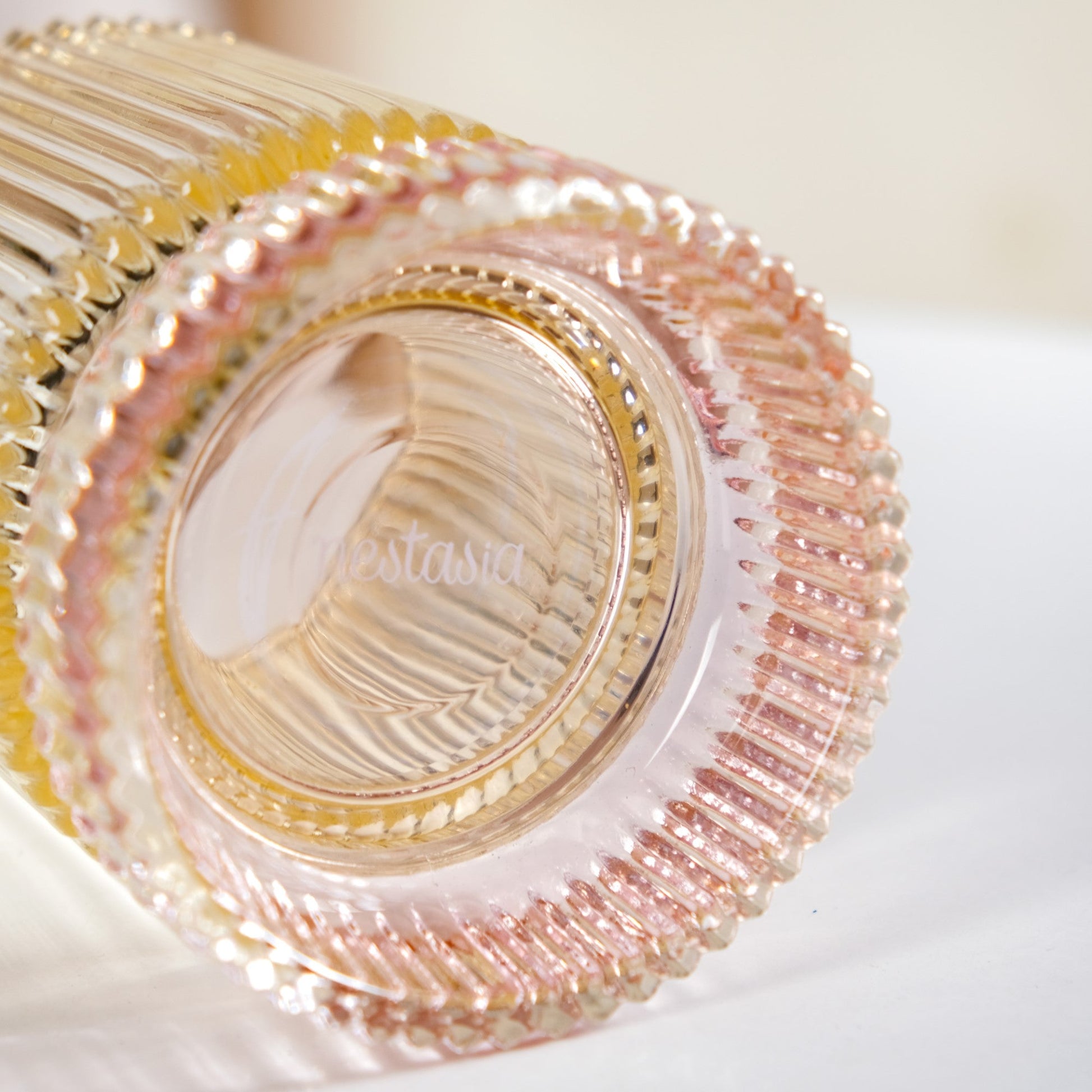 Design: This tealight holder features a vibrant yellow body with a contrasting pink base, adding a pop of colour to your decor. The exterior is adorned with ribbed textures, creating a striking visual effect. Designed to accommodate a single tealight or small pillar candle, it is both practical and decorative. The short base ensures stability, keeping the holder securely in place.