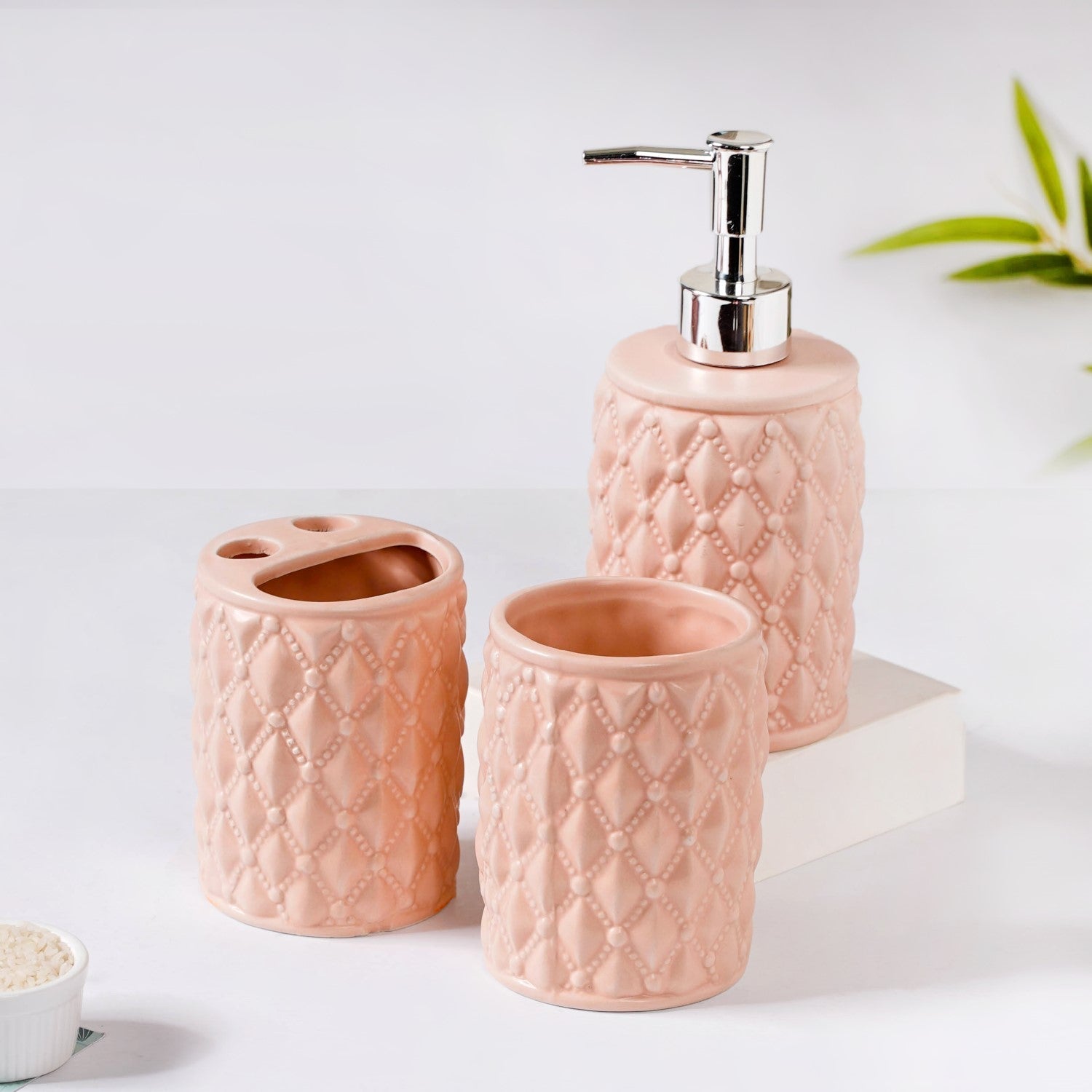 2 Peach Knit Design Ceramic Bathroom Accessories Set Of 3 DFS06CF11 1 1150 1750