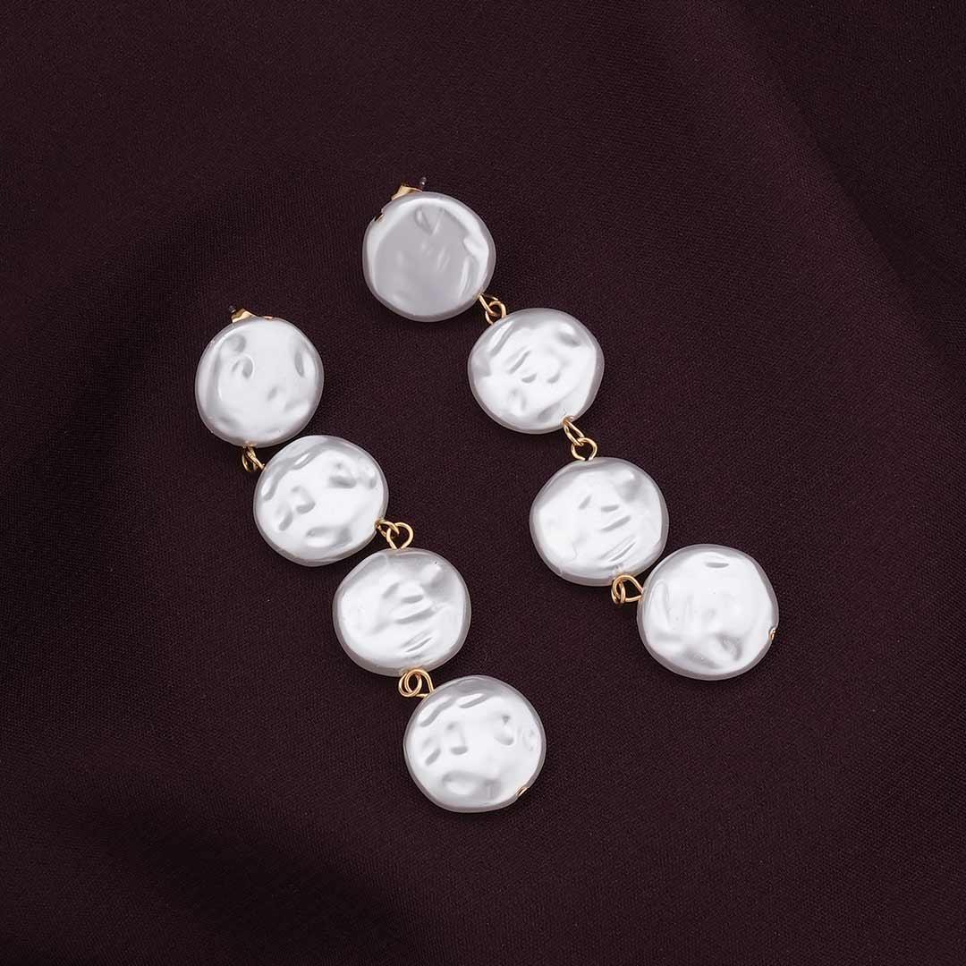 Embrace timeless elegance with these stunning pearl drop earrings. Crafted from stainless steel and finished with radiant 18k gold plating, each earring features lustrous white pearls that cascade gracefully, creating a sophisticated statement. Perfect for celebrations, evening soirées, or elevating everyday outfits, these danglers combine classic charm with modern durability, making them a jewellery essential.