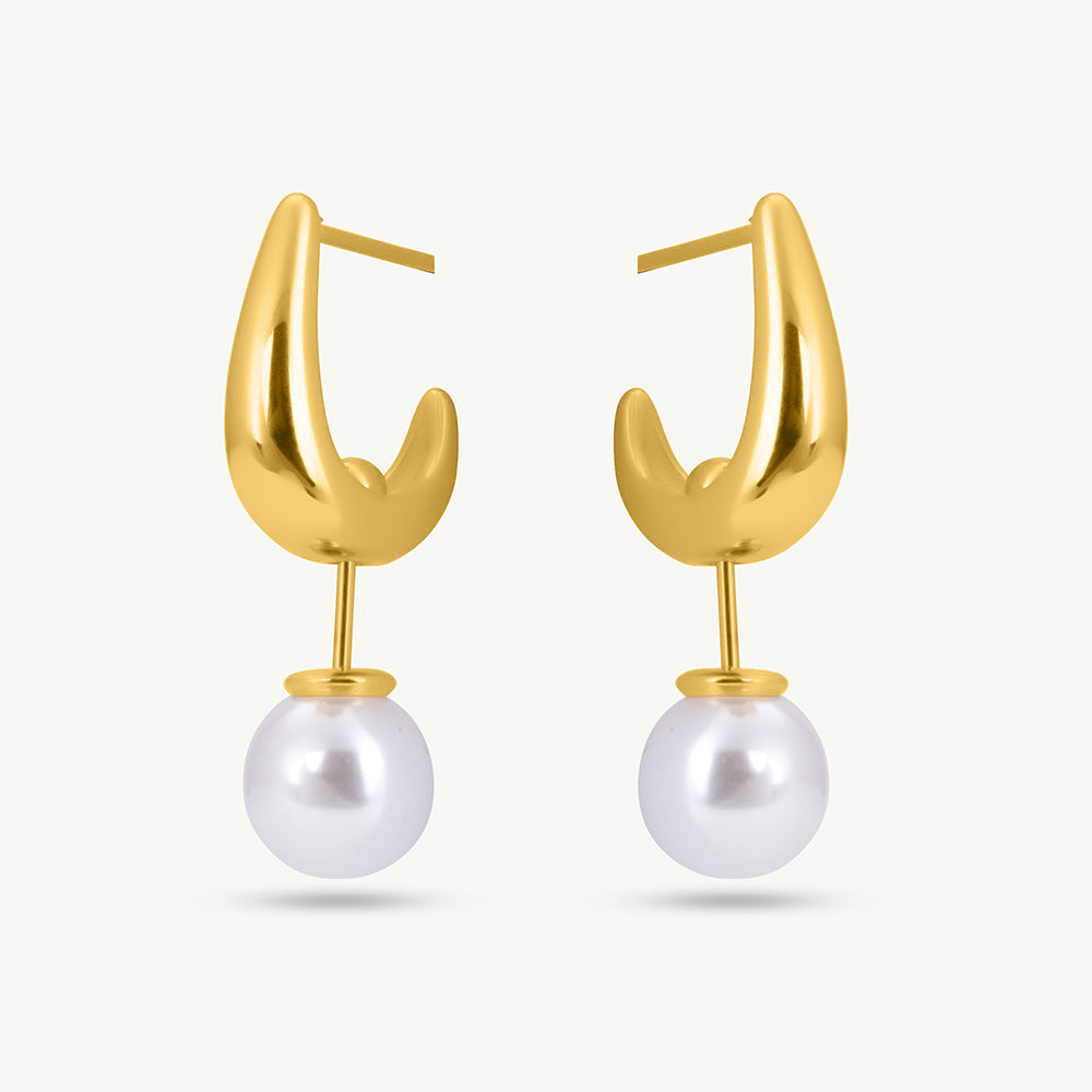 Embrace celestial elegance with these Pearl Moon earrings. Crafted from durable stainless steel and finished with radiant 18k gold plating, each earring features lustrous white pearls in a graceful crescent design. Perfect for both everyday wear and special occasions, these earrings add a touch of whimsical sophistication to any outfit.