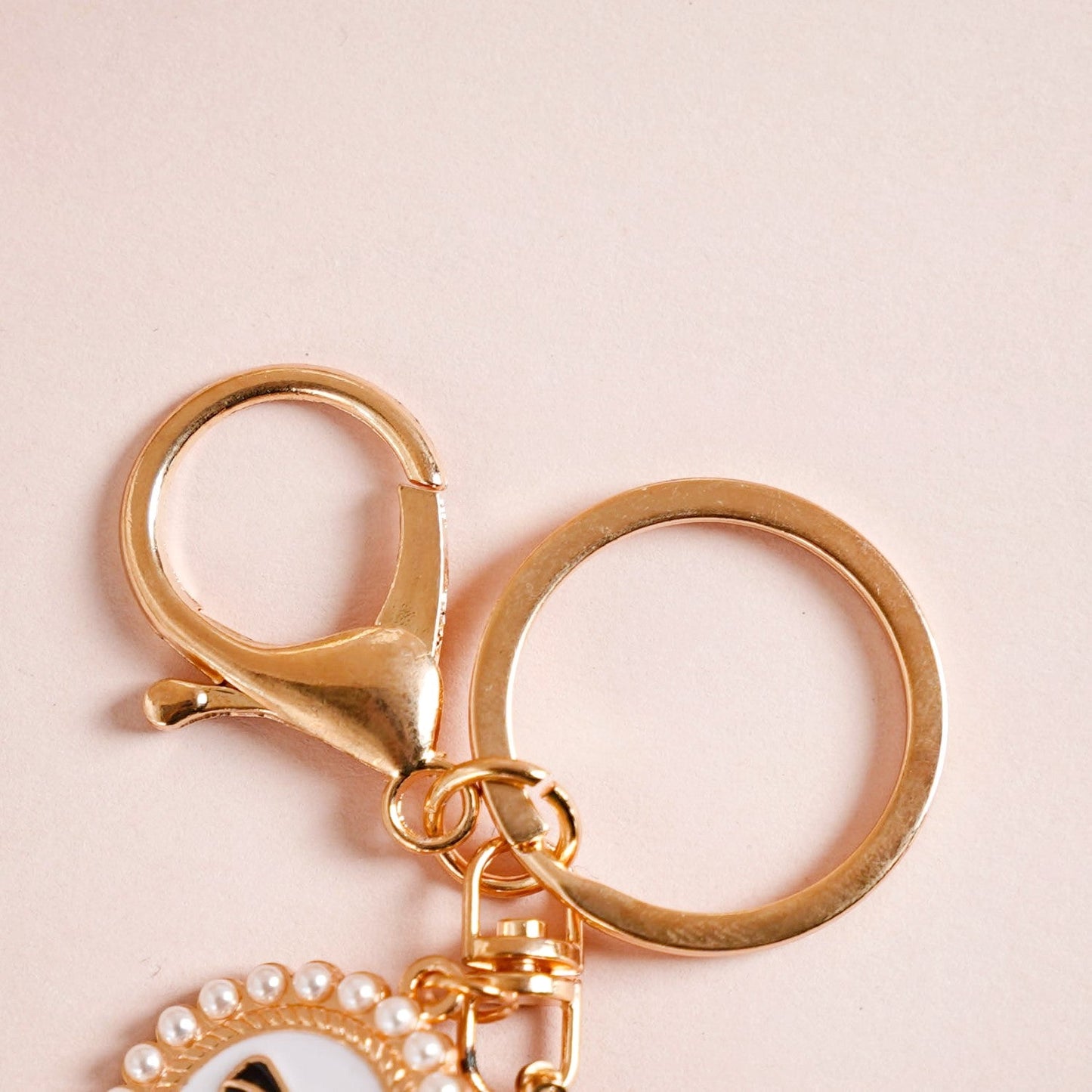 A pearl of a find! This cute keychain is all about elegance and charm, featuring a lovely white pearl dangler that catches the light with every move. Hanging from a cute bow charm, it’s the little accessory that makes a big statement.