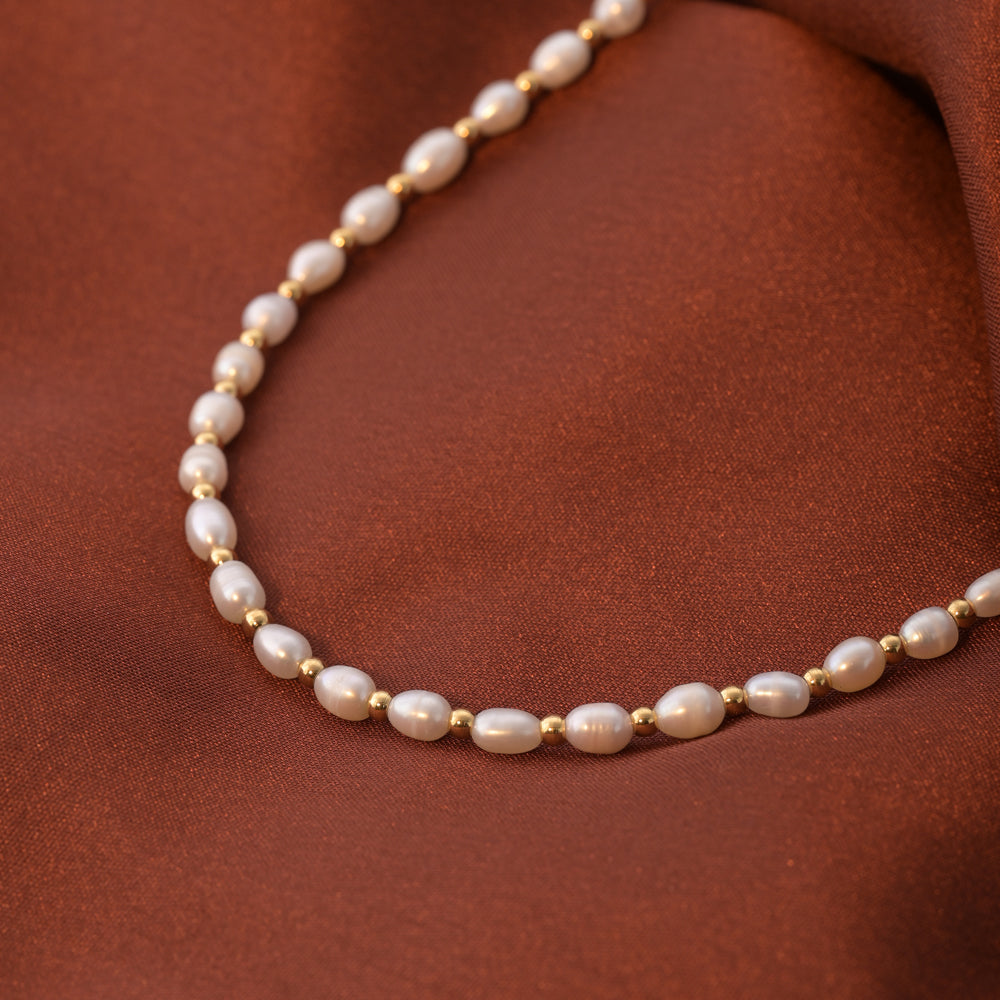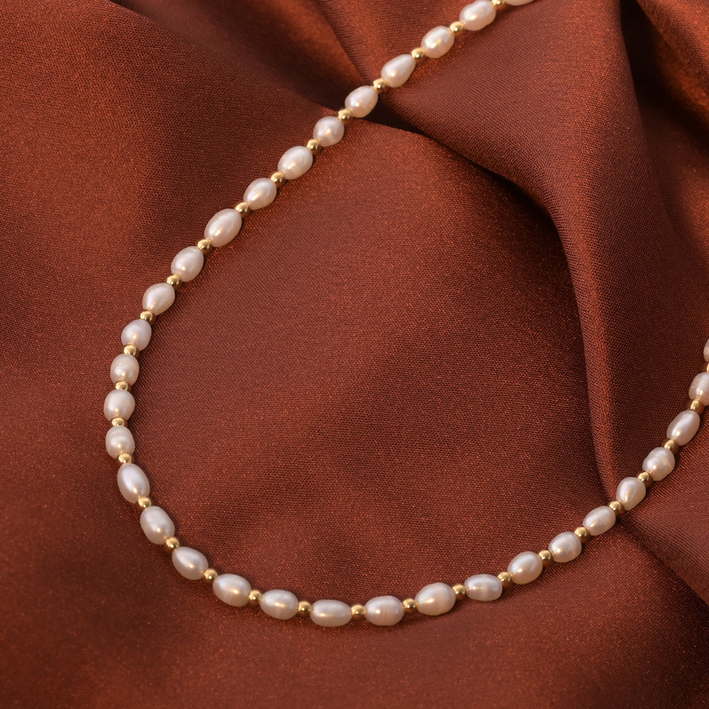 Experiment with layered looks by combining the Pearly Bliss Beads Necklace with other delicate chains or shorter necklaces. This creates a stylish and personalized layered appearance, reflecting your unique fashion sense.
