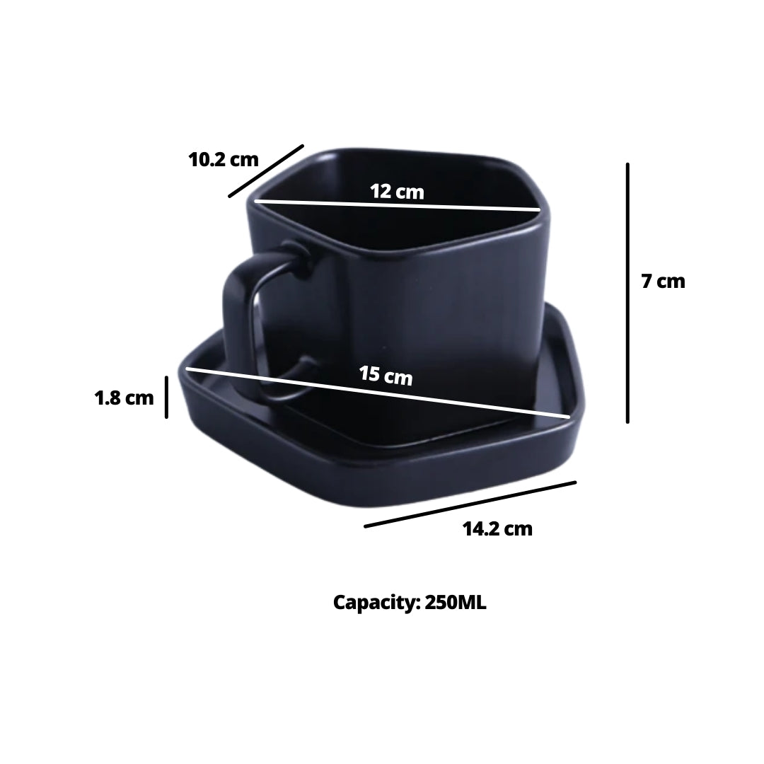 A contemporary take on the cup and saucer, the pentagon mug with plate is apt for tea or coffee along with cookies on the side. The plates can be separately used as snack plates or dessert plates or as a saucer under the mug.