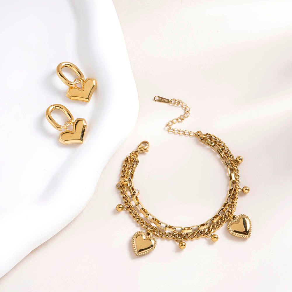 Peripheral Heart Earrings & Hearts All Over Bracelet Combo Set