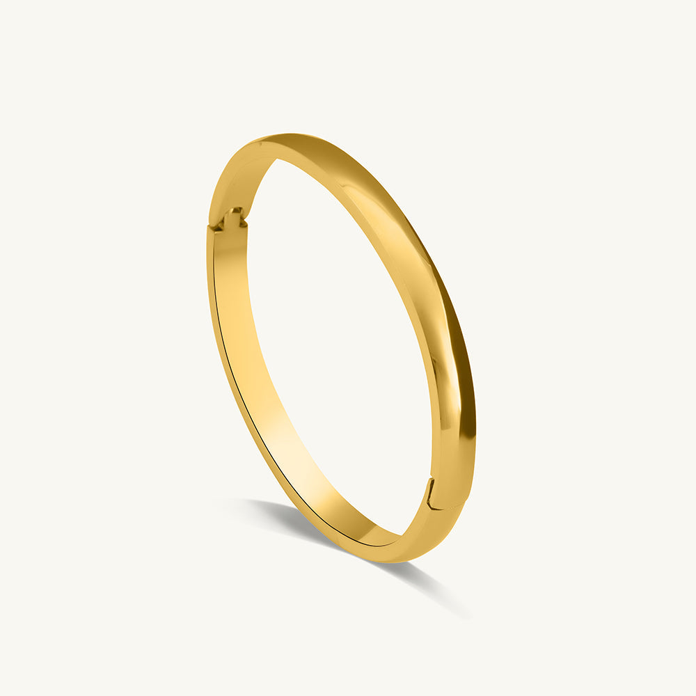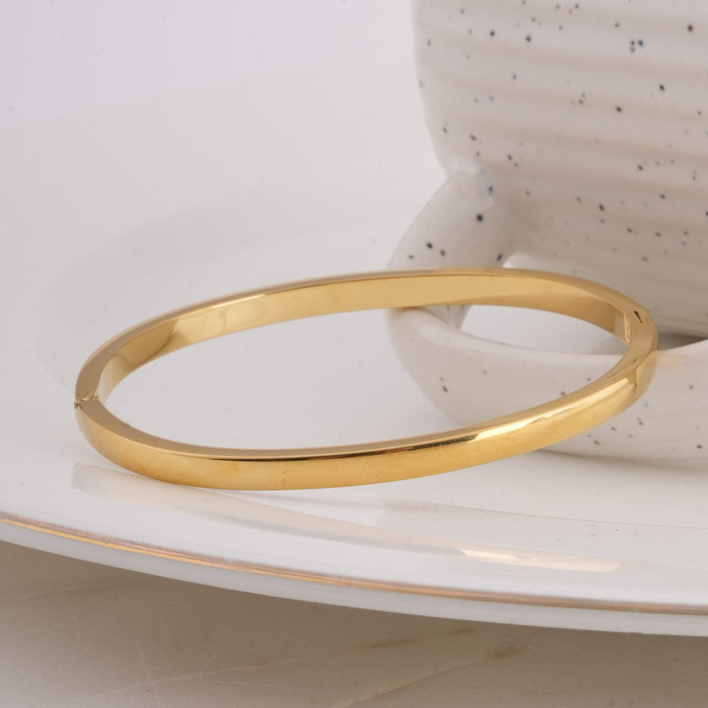 The Plain Gold Bangles Bracelet embodies timeless elegance in demi-fine jewellery. Crafted in stainless steel with a smooth gold plated jewellery finish, it’s one of those classic bracelets for women that never go out of style. Unlike heavily embellished pieces, this sleek design makes it versatile, equally perfect for stacking with other gold bangles for women or wearing solo for a clean, polished look. A staple among gold bracelets for women, it brings understated sophistication to every outfit.