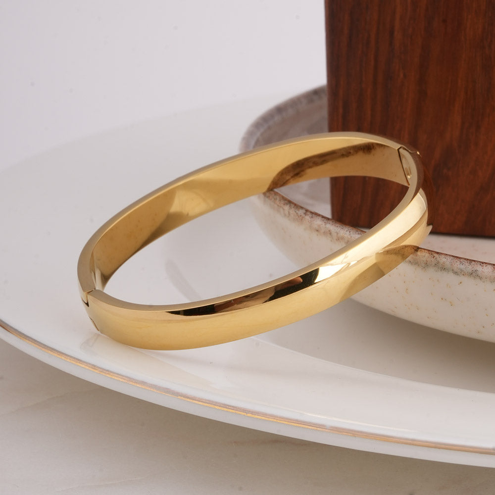 Plain Gold Bangles Bracelet 7mm brings timeless elegance to your jewellery collection, crafted in stainless steel with a luxurious 18k gold plated jewellery finish. With its sleek 7mm width, this piece strikes the perfect balance between boldness and sophistication, making it a standout among demi-fine jewellery pieces. A versatile design, it seamlessly fits into the everyday wardrobe of modern women while remaining a must-have in the category of bracelets for women, gold bracelets for women, and classic bangles for women.