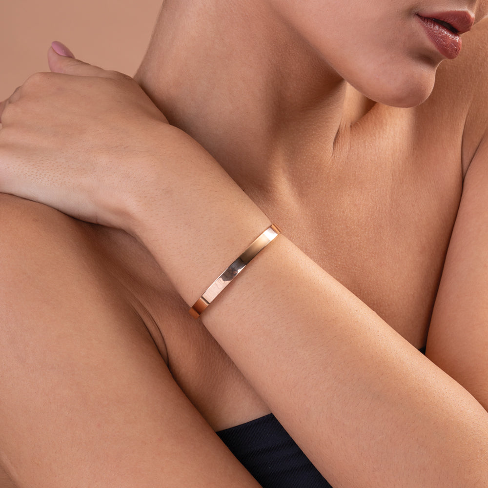 This gold-plated stackable bangle bracelet for women blends contemporary with simplicity. It's an effortlessly chic modern bracelet and can be paired with your everyday basics, keeping the vibe bold without being too overpowering. Its versatility complements every outfit, be it bold or minimal. Our gold bangle bracelet glows with charm and graceful balance. This anti-tarnish, elegant piece is a perfect accent for routine use. It's the perfect blend of chic, comfort and durability.