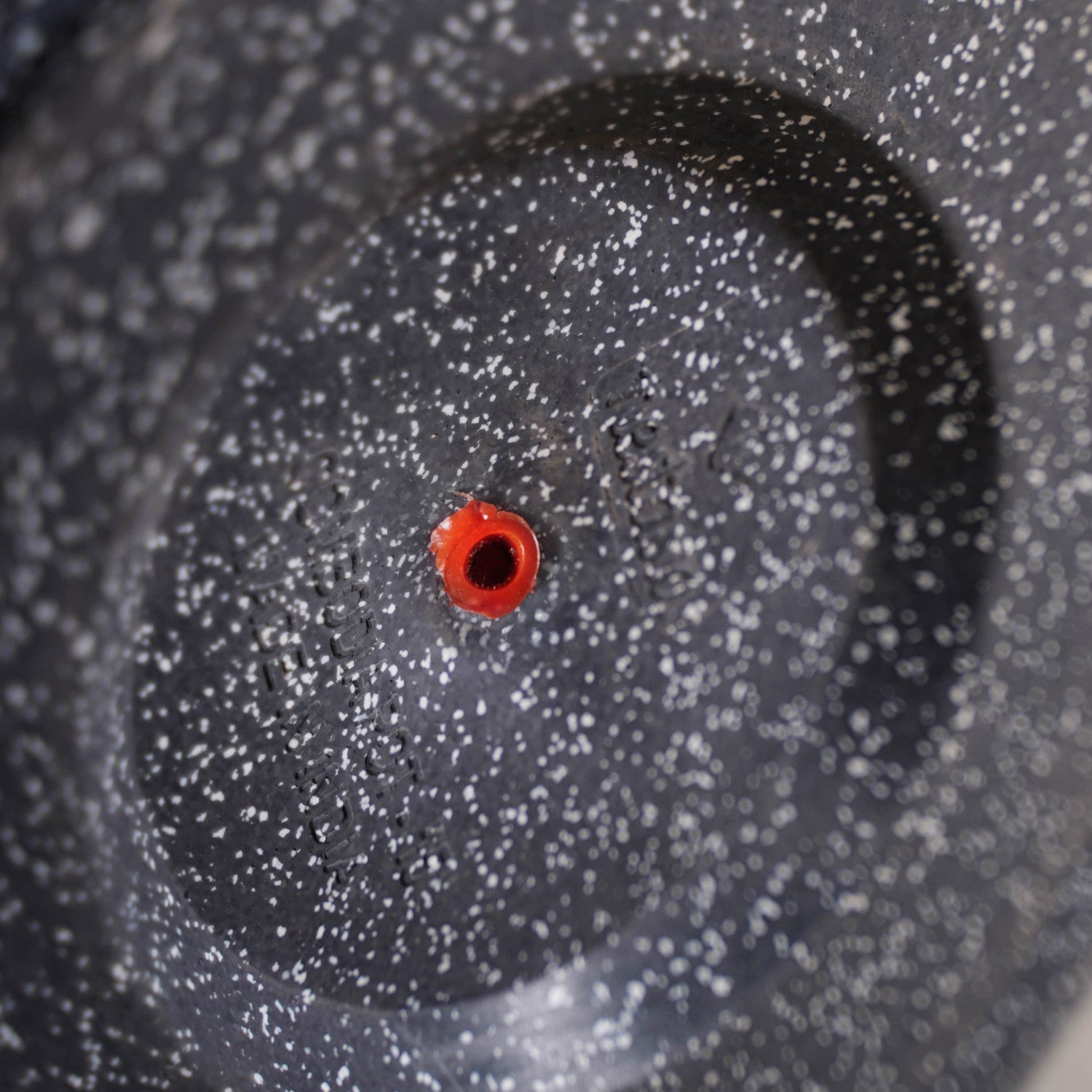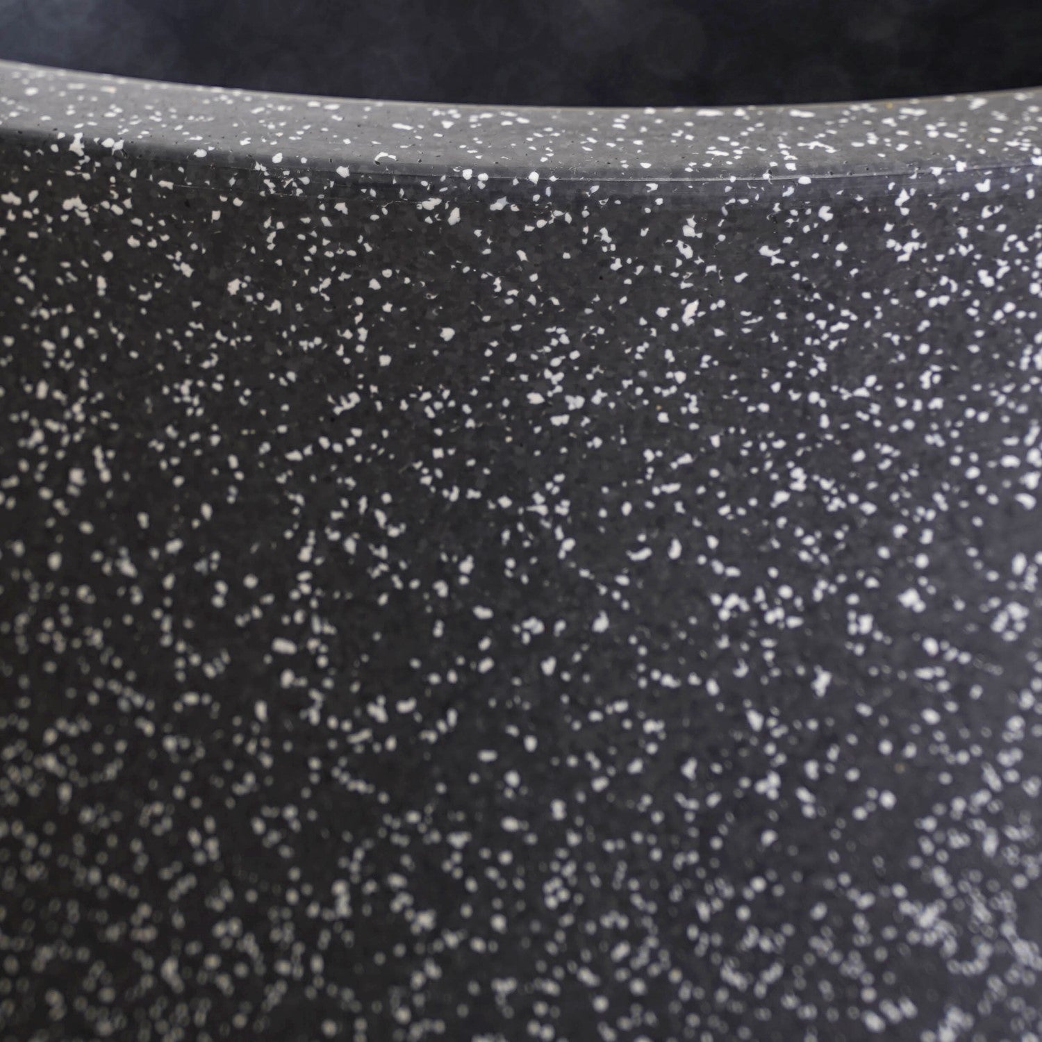 Design: This beautiful planter is made from premium LLDPE. It has a round silhouette that exudes softness with a plain outer body and a textured inner body, along with a bold rim that has an embossed "Garden's Need" text on its rim. The exterior features a charcoal grey base peppered with fine white speckles, giving it a granite-inspired look that mimics natural stone. The speckles create a subtle visual texture that plays beautifully with light and shadow, especially in well-lit corners. It has an inbuilt water vent that comes with a rubber stopper.